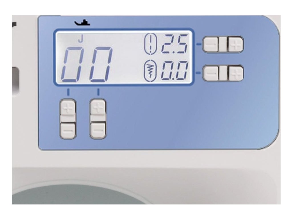 - Nastavitelná délka a šířka stehu pomocí displeje