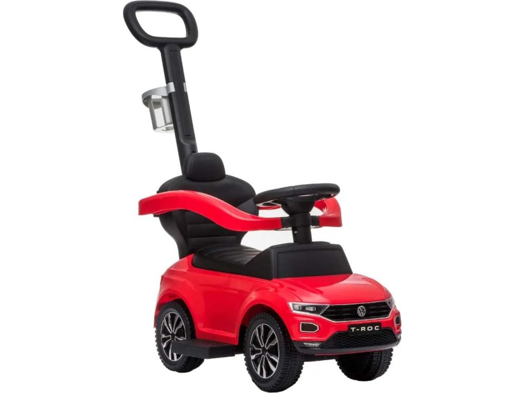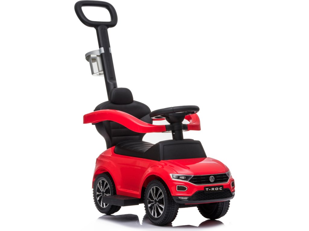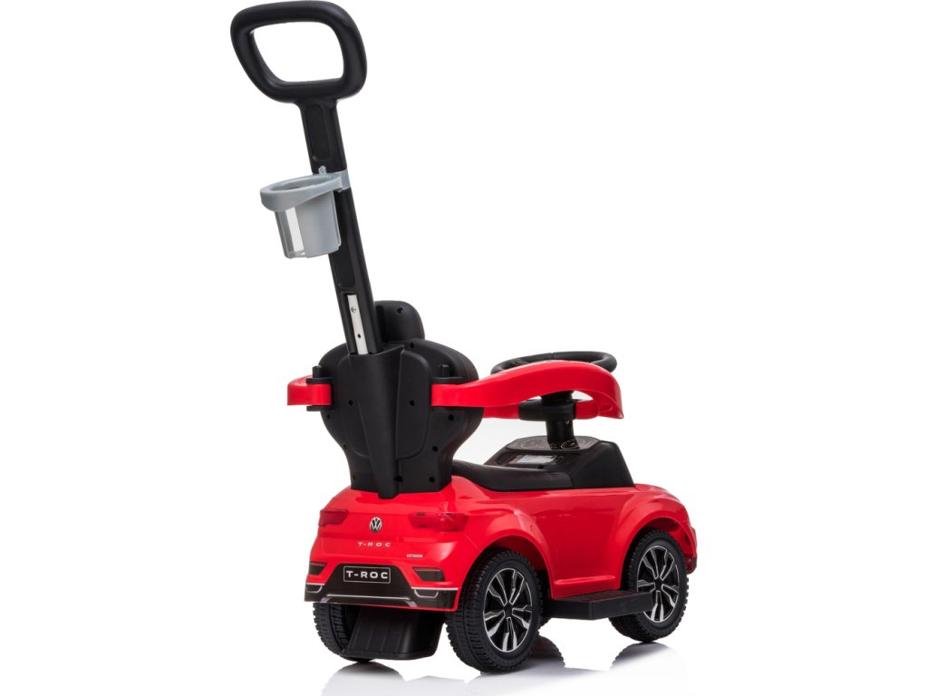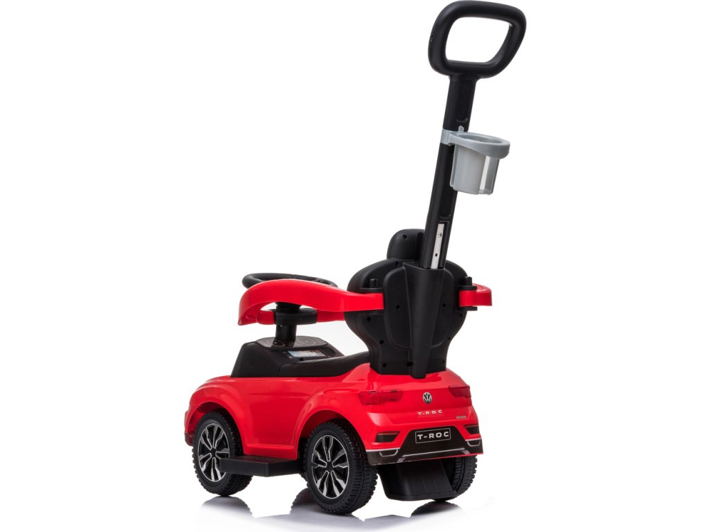 Chcete, aby mělo vaše dítě jedinečné odrážedlo, za kterým se budou ostatní děti a rodiče otáčet? Pak mu pořiďte luxusní odráželo VW T-ROCK 3v1 s vodící tyčí a držákem na pití. Jedná se o zmenšenou kopii opravdového sportovního auta. Dítě ocení dostatečně dostatečné velký úložný prostor pod sedátkem, kam si může dát svoje oblíbené hračky a jistě se mu i zalíbí zvuky a melodie na volantu. Rodiče určitě ocení sklopnou zádovou opěrku a vodící tyč pro větší komfort a bezpečnost.Baterie: