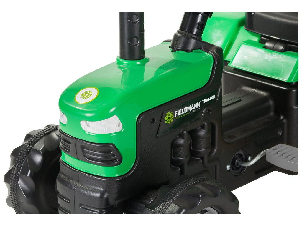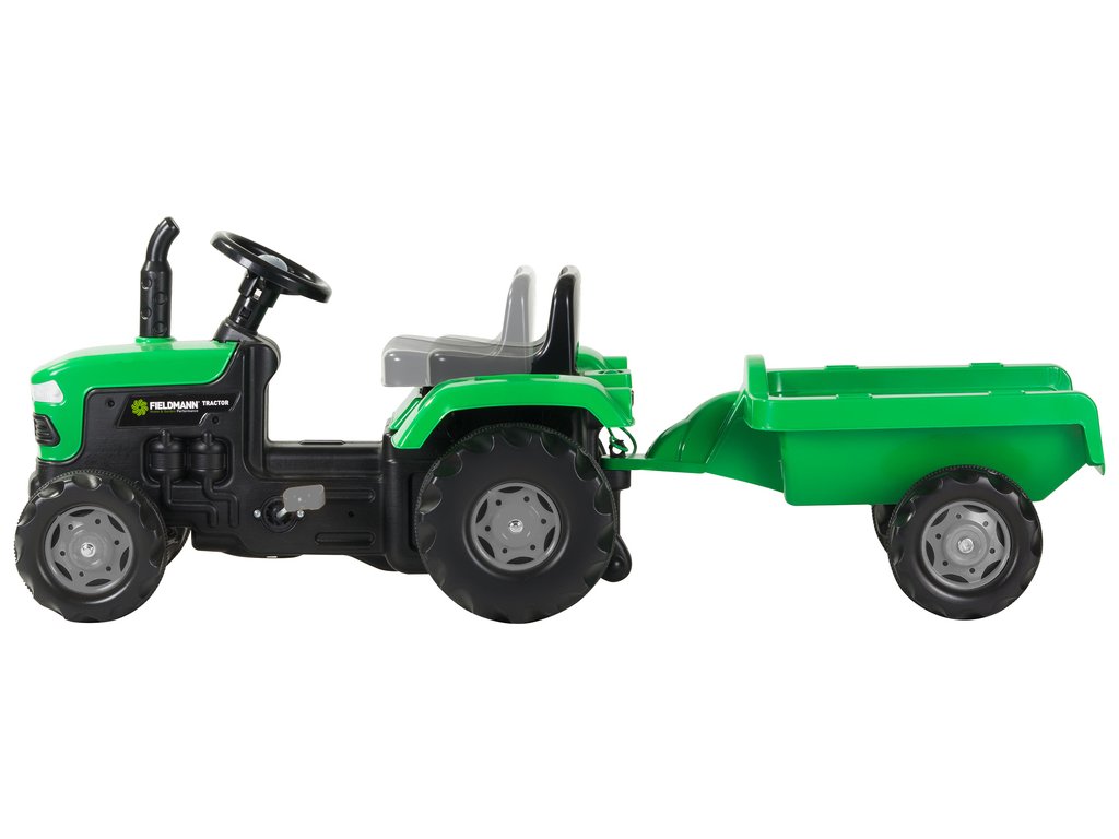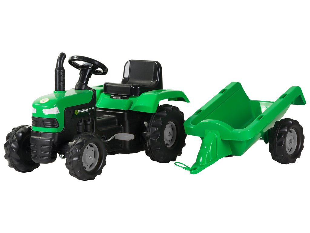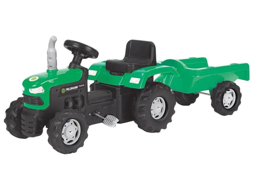 Šlapací traktor s odpojitelným vozíkem má pohon obou zadních kol, polohovatelné sedátko a klakson na volantu. Děti za jeho volantem si můžou hrát na farmáře a kdo ví, co všechno s ním vymyslí.Balení standardně obsahuje samolepky, kterými lze vozítko polepit a vylepšit tak jeho vzhled. Konkrétní podobu příslušenství ale doporučujeme ověřit u daného prodejce.
