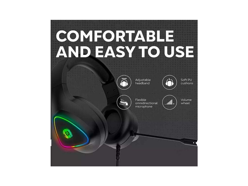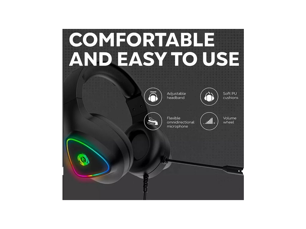 Měkké, jemné PU polštářky a nastavitelná čelenka s kovovou destičkou zajišťují perfektní přizpůsobení. Flexibilní všesměrový mikrofon na husím krku poskytuje široké možnosti nastavení, takže si můžete najít ideální polohu pro čistou komunikaci se spoluhráči. Speciální kolečko pro ovládání hlasitosti poskytuje snadné ovládání zvuku.