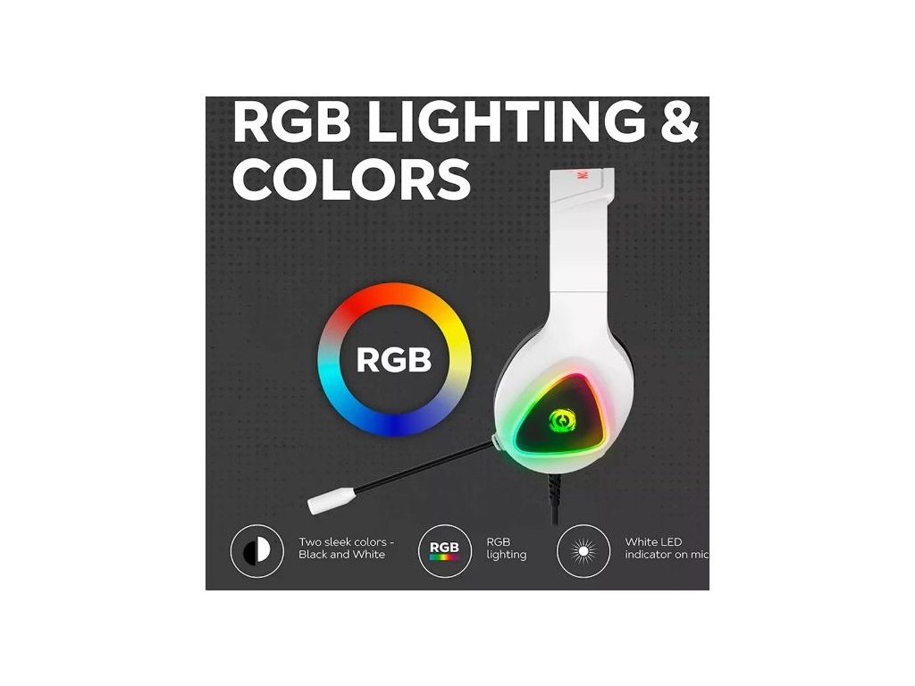 Canyon Shadder je k dispozici ve dvou elegantních barvách: bílé a černé. Sluchátka jsou orámována působivým osvětlením RGB, zatímco mikrofon je vybaven bílým LED indikátorem stavu.