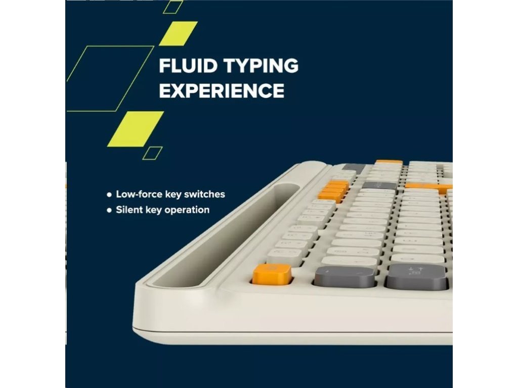 Spínače kláves s nízkou silou poskytují příjemnou zvukovou a hmatovou odezvu při každém stisknutí. Konstrukce rámu zajišťuje tichý chod kláves, což je ideální pro domácnosti i kanceláře, kde je třeba minimalizovat hluk.