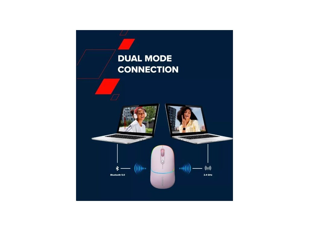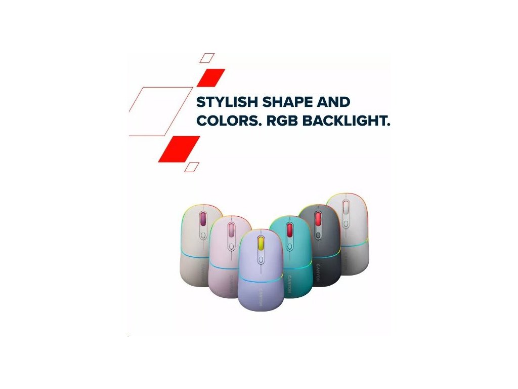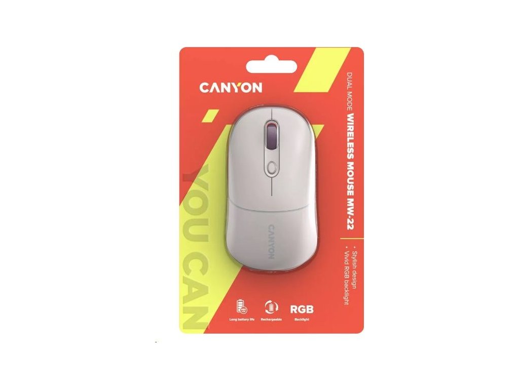 Bezdrátová myš MW-22 s dvojím připojenímCanyon MW-22 je kompaktní myš s mnoha esy v rukávu. Můžete ji připojit přes Bluetooth 5.0 nebo 2,4GHz USB přijímač, takže si vyberete připojení, které bude vyhovovat vašim potřebám. Optický snímač myši má variabilní nastavení DPI až do hodnoty 1600. Baterie je dobíjecí a má dlouhou výdrž díky kapacitě 650 mAh a inteligentnímu režimu úspory energie. Nechybí ani RGB podsvícení, u kterého si můžete vybrat mezi 15 režimy nebo jej vypnout a získat tak delší výdrž. Když potřebujete myš dobít, nabízí nabíjecí port typu C - 80 cm kabel je součástí balení. Vše je dodáváno v 5 pastelových barvách: svěží nádech vaší pracovní sestavy. Dejte své staré myši odpočinout - je čas vyniknout.
