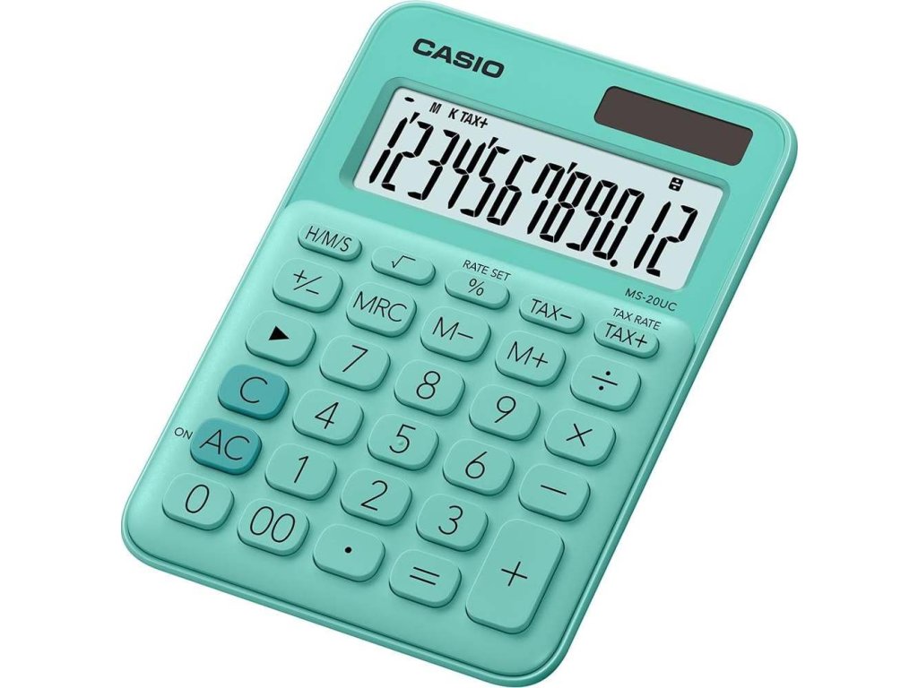 Klasickou kancelářskou kalkulačku využijí nejen děti na základní nebo střední škole, ale může se hodit i těm, kteří denně pracují s čísly a potřebují si své počty ověřit, případně si zjednodušit složité číselné operace. Casio MS 20 UC je stolní kalkulačka s velkým, 12místným LCD displejem a plastovými tlačítky, která se stane vaším nejlepším pomocníkem. Velkou výhodou je duální napájení – jak prostřednictvím baterie, tak přes solární panel. Nemusíte proto mít strach, že se vám kalkulačka uprostřed složitých počtů najednou vybije.Základní i pokročilé funkce