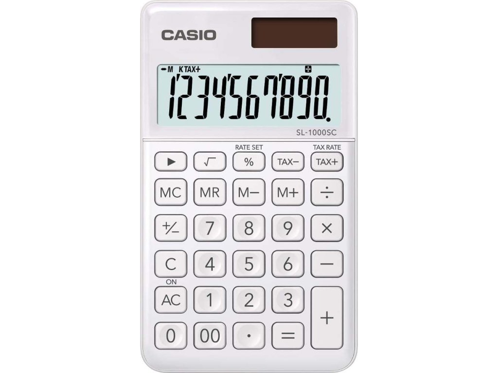 Casio SL 1000 SC je mimořádně kompaktní a lehká kalkulačka, která je svou hmotností pouhých 55 gramů jako stvořená k tomu, abyste ji nosili v tašce a měli ji po ruce vždy, když potřebujete rychle spočítat základní matematické úkony, ale např. také DPH, zisk a další pokročilejší účetnické operace. Přístroj má velký desetimístný LCD displej, na němž kromě samotných číslic vidíte také aktuální zvolené funkce pro maximální přehlednost. Za pomoci tříčíslicových čárek vždy přesně a rychle uvidíte, jak vysoká cifra vám při počítání vyšla.Duální napájení