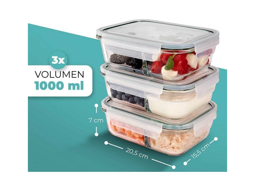 Mějte po ruce stále čerstvé a svěží jídlo, ať už cestujete do práce nebo na víkend na chatu! Nic neudělá větší radost než doma připravené a s láskou uvařené jídlo, které si můžete otevřít v práci stále voňavé a chutné. Praktická sada dóz na potraviny Classbach FHD 4021 o 3 kusech vám zajistí dokonalý požitek z čerstvého jídla.Sada nabízí všestranné využití, od mrazení, ohřevu, skladování až po přepravu na cestách. Můžete v ní uchovávat nejrůznější jídla, jako omáčky, zeleninu, ovoce, vafle nebo třeba dětskou výživu. Dózy udržují jídlo dlouho svěží a zachovávají jeho aroma. Jsou 100 % těsné díky praktickému 4cestnému zapínání Click & Safe a silikonové těsnění ve víku zajišťuje jejich kvalitu. Výhodou je snadná manipulace a vysoká teplotní odolnost od –40 do +110 °C. Můžete je tak bez obav umístit do myčky, mrazáku do –40 °C a mikrovlnné trouby do +110 °C. Nádoby jsou stohovatelné, bez BPA a umožňují snadnou manipulaci díky odnímatelnému těsnicímu víku.