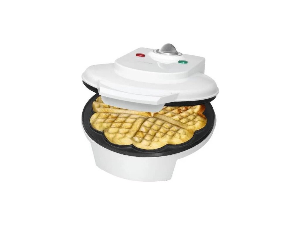 Vaflovač Clatronic vám umožní připravit si lahodnou snídani nebo překvapit návštěvu dokonale nadýchanými a přitom křupavými domácími vaflemi. Příprava je velmi jednoduchá a výsledek vždy perfektní. Vaflovač Clatronic splňuje všechny parametry, na které byste se měli soustředit při výběru vaflovače. Díky minimalistickému designu a klasické bílé barvě, zapadne do jakéhokoliv interiéru. Vaflovač Clatronic je díky svým kompaktním rozměrům a váze pouhých 1,2 kg dobře skladný a je možné jej skladovat v horizontální i vertikální poloze.Příkon vaflovače Clatronic je 1200 W. Při přípravě vaflí máte k dispozici 4 prostorné pečicí plochy ve tvaru srdíček. Příprava vaflí je velice rychlá a výsledné vafle nejen že chutnají skvěle, ale také na talíři krásně vypadají. Následná údržba je téměř nulová díky nepřilnavému povrchu pečících ploch. Plochy stačí nechat vychladnout, otřít houbičkou či papírovou utěrkou a vaflovač Clatronic je opět připraven k provozu.
