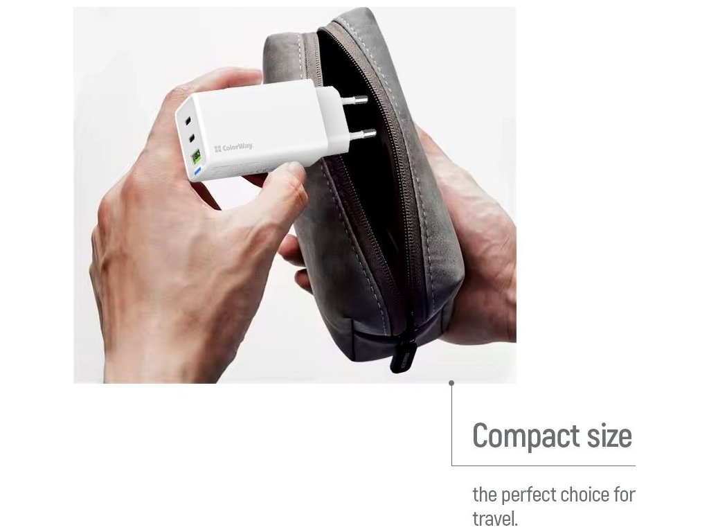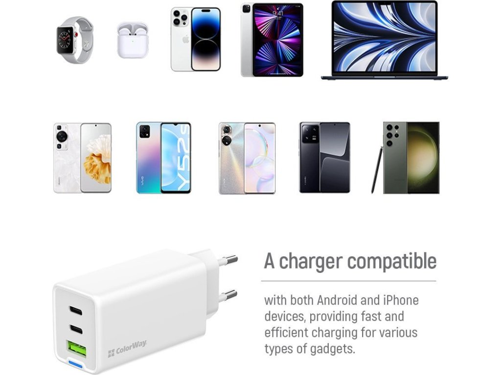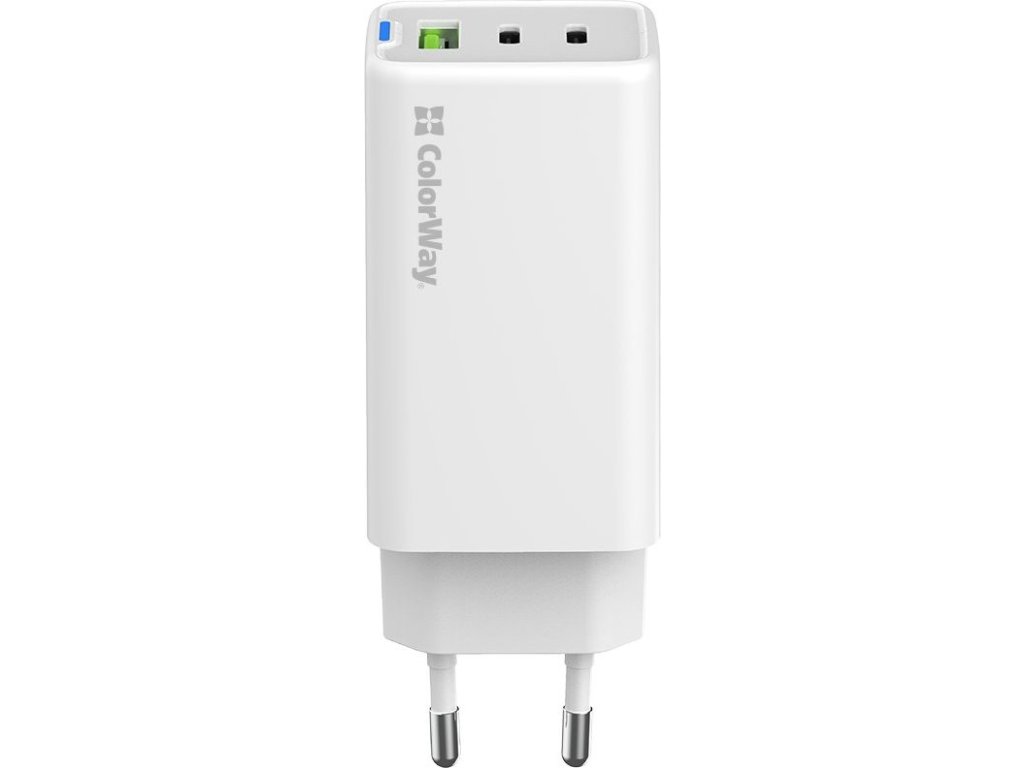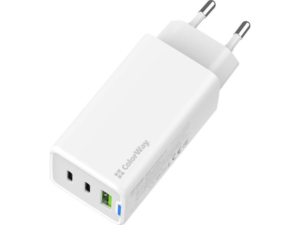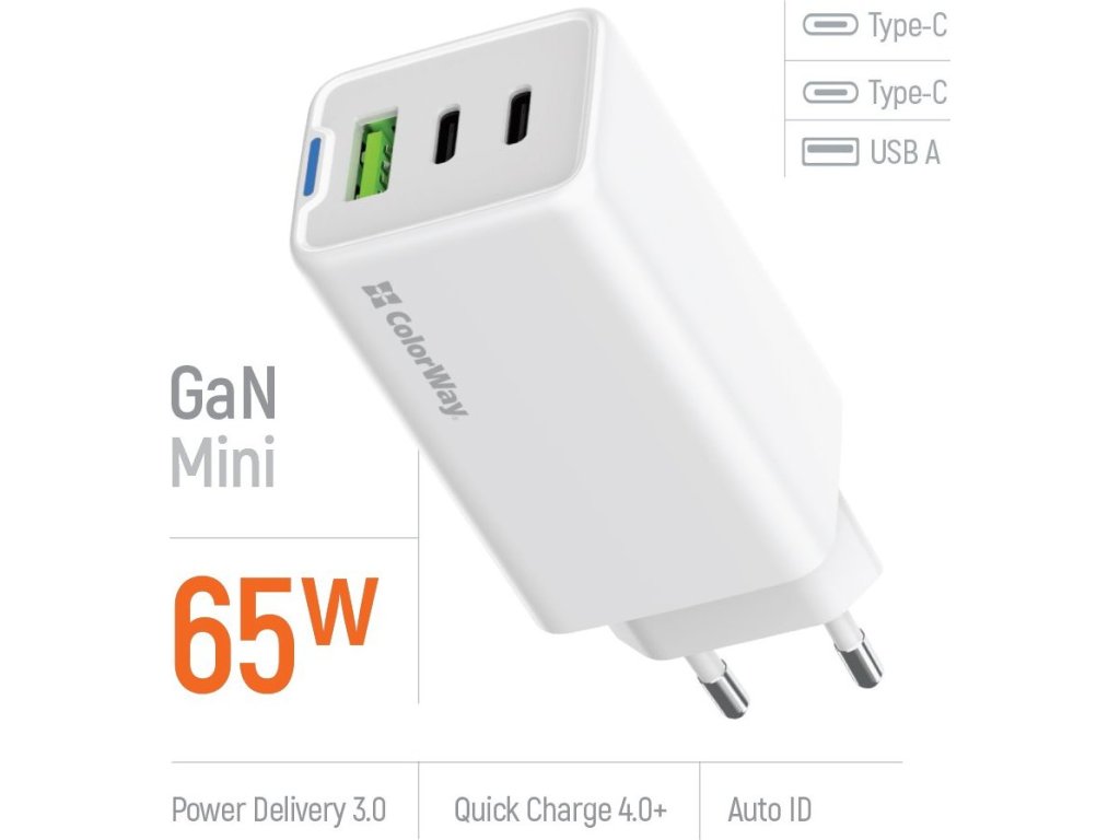 ColorWay 2x USB-C, 1x USB-A/ síťová nabíječka/ GaN/ PD/ PPS/ 65W/ Bílá