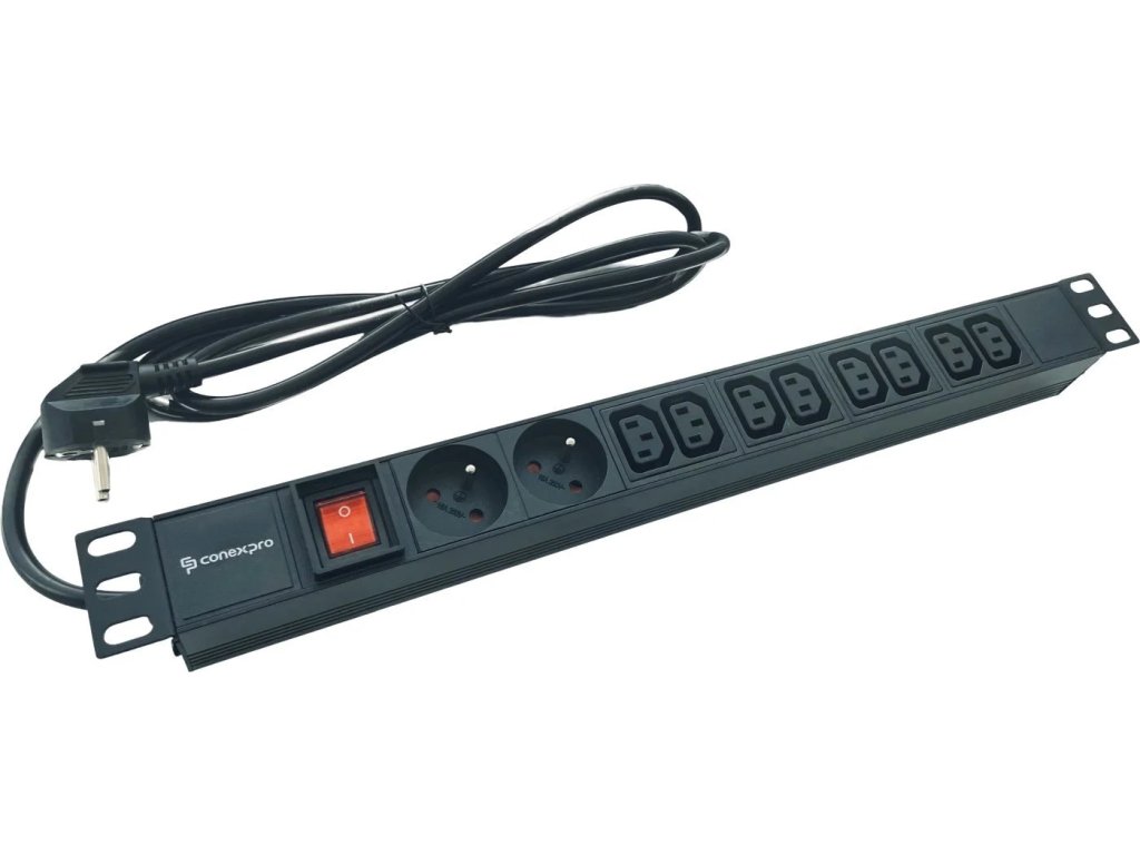 Kombinovaný rozvodný napájecí panel určený pro montáž do standardních 19" datových rozvaděčů s výškou 1U. Je vybaven 2x 230V zásuvkami typu FR a 8x 230V IEC C13 zásuvkami, což umožňuje připojení různých zařízení jako jsou servery, switche, routery nebo jiná IT vybavení. Panel disponuje hliníkovým tělem pro lepší odvod tepla a je vybaven tlačítkem pro vypnutí pro snadné ovládání. Z boku panelu je vyveden 1,4m dlouhý přívodní kabel s běžným zakončením, což usnadňuje připojení k elektrické síti. Maximální zatížení panelu je 16A, což poskytuje dostatečnou kapacitu pro napájení zařízení v datových centrech, serverovnách, nebo kancelářských prostorách.Doplňkové parametry