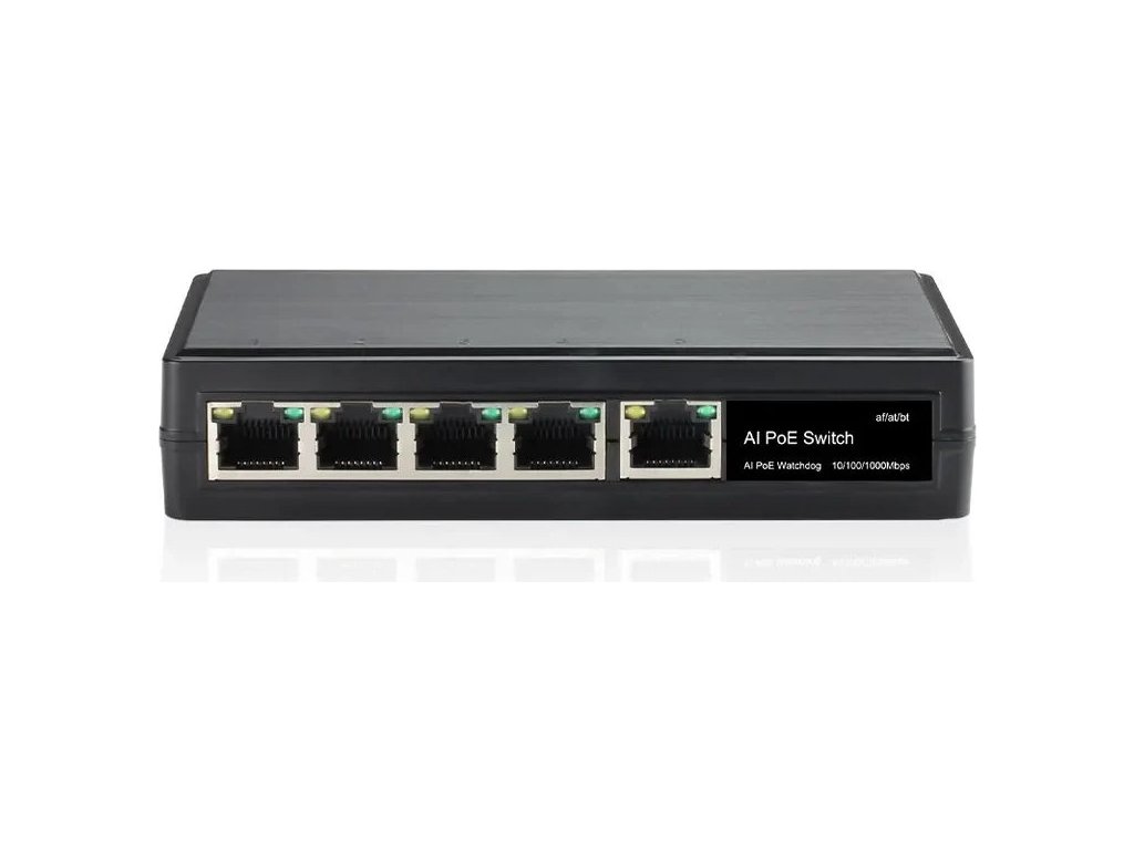 Gigabitový PoE switch v plastovém šasi napájený pouze přes PoE, bez managementu, s 5x Gigabit porty je zařízení určené do míst bez napájení a je vhodný pro napájení až 4 zařízení (kamer / Wi-Fi AP). Switch nabízí tichý bezventilátorový chod, 5x 10/100/1000 Mbps z čehož 4 LAN porty podporují funkci PoE (802.3af/at, 30 W / port, port č.4 podporuje dokonce 802.3af/at/bt - 60 W / port) s celkovým PoE budgetem 60 W (záleží na vstupním napájení), nízkou vnitřní spotřebou a napájením pouze přes PoE (802.3at/bt).Klíčové vlastnosti