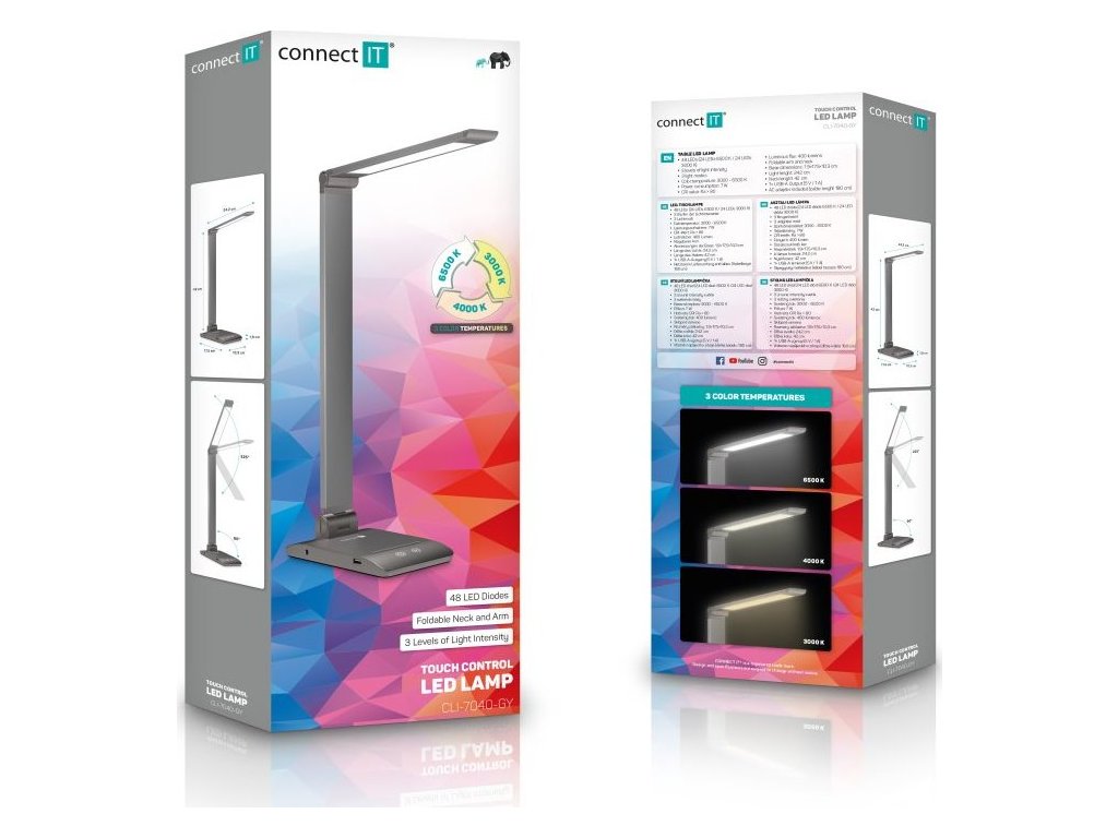 CONNECT IT BRIGHT stolní LED lampička, ŠEDÁ