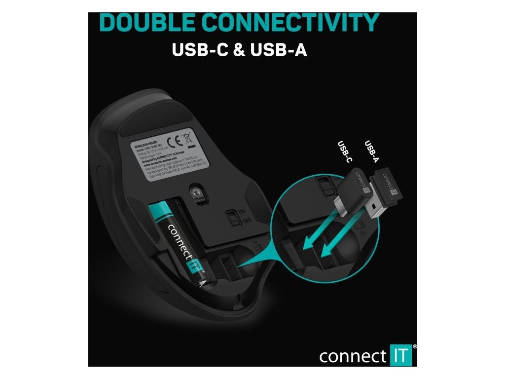 CONNECT IT Dual SmartSwitch bezdrátová myš, USB-A + C, ČERNÁ
