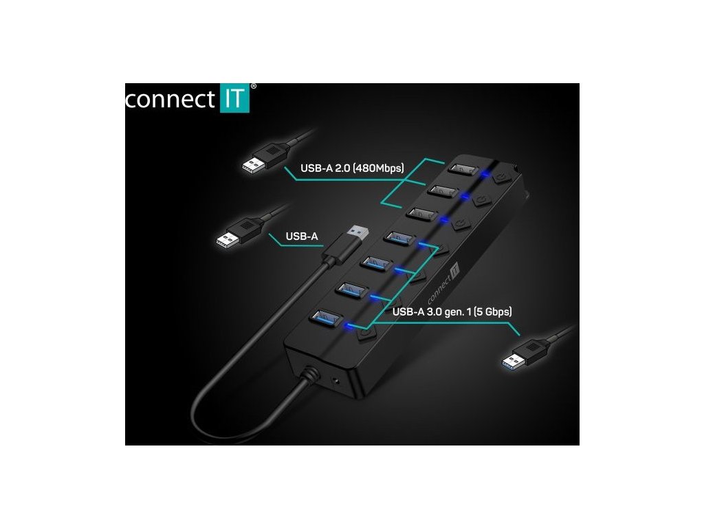 CONNECT IT Mighty Switch 2 USB-A hub, (4xUSB-A 3.0, 3xUSB-A 2.0), externí