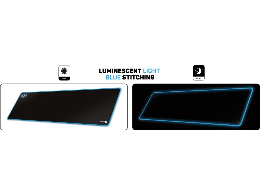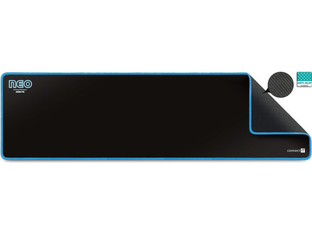Profesionální podložka herní řady NEO určená i pro amatérské využití. Podložka má měkký, příjemný povrch. Při velikosti herní plochy 886 × 245 mm vám nikdy nedojde prostor k pohybu. Velkou výhodou je pogumovaná protiskluzová spodní strana a antistatický povrch, po kterém bez problému bude jezdit každá myš. Materiál byl navržen tak, aby odpuzoval vodu a nečistoty. Podložka má obšité okraje speciální kvalitní svítící nití, která ve tmě jemně svítí.Na kvalitní a stylové podložce CONNECT IT NEO se projeví pozitivní vlastnosti vaší myši. Moderní materiál, ze kterého je podložka vyrobena, poskytuje myši dobře snímatelný podklad i pro nejjemnější laserové snímání. Dvouvrstvý materiál kombinující protiskluznost na spodní straně a ideální vlastnosti pro myši na vrchní straně se výraznou měrou zaslouží o ideální poměr mezi kontrolou nad myší a skluzem.