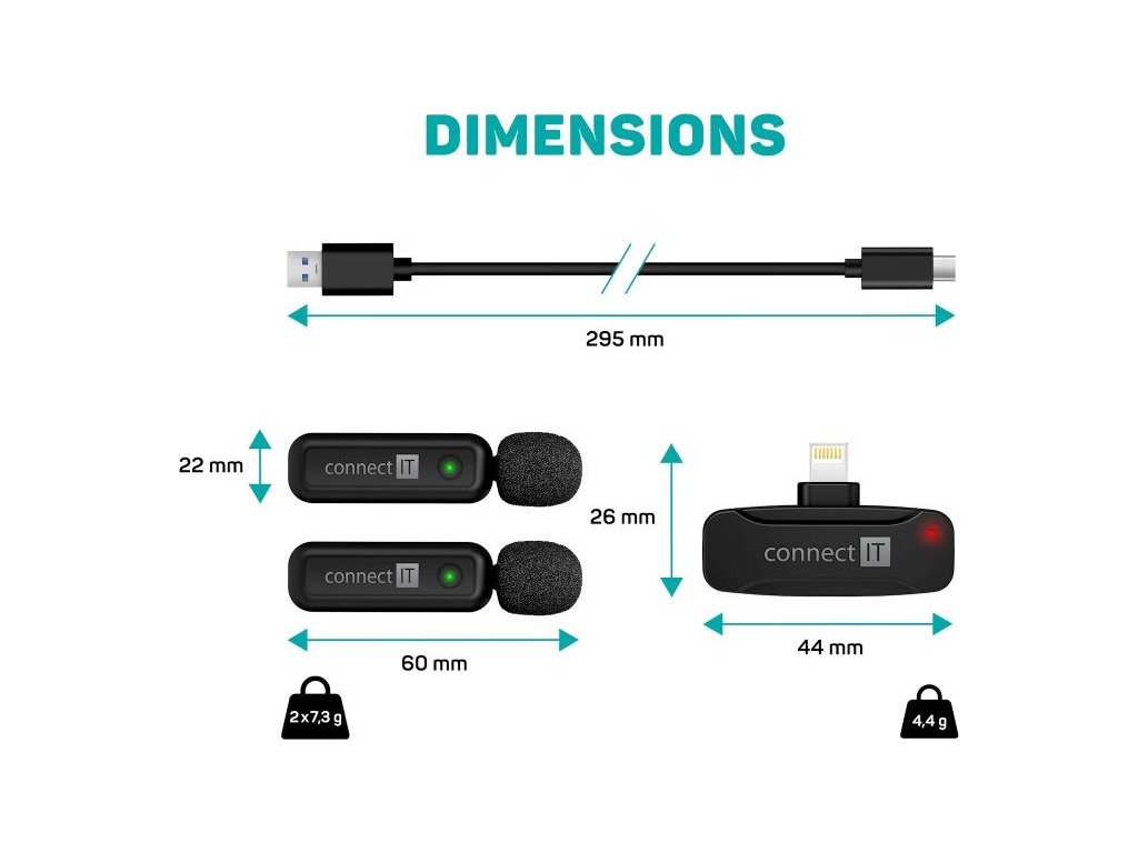 CONNECT IT Wireless Lavalier mikrofon Lightning (2 ks + receiver) set ČERNÝ