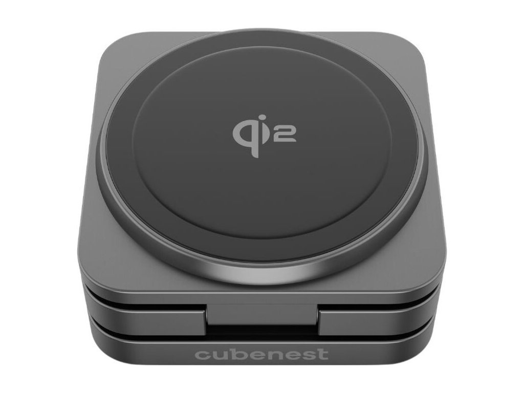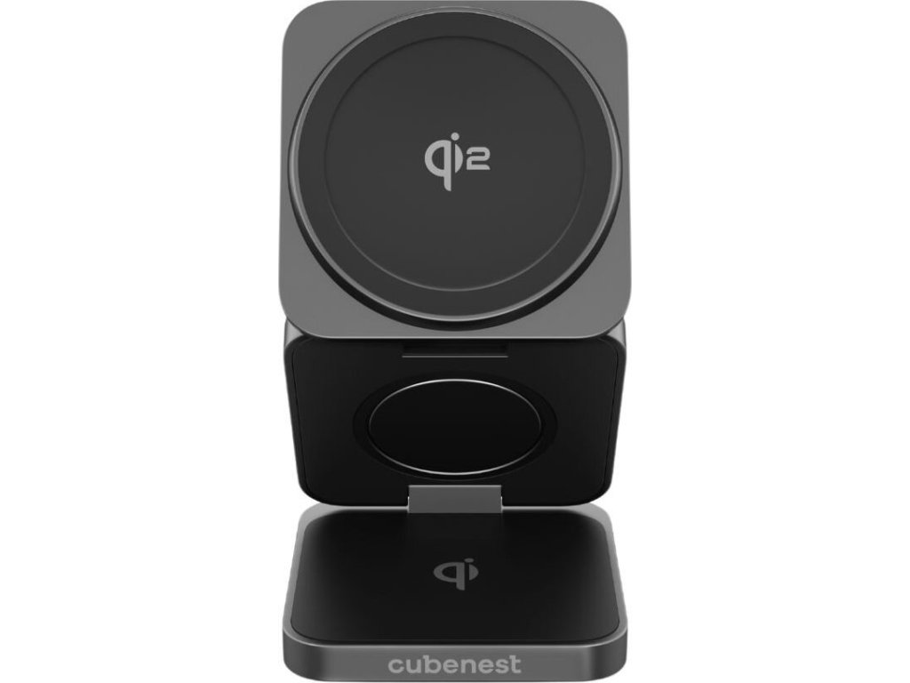 Cubenest 3v1 Qi2 Skládací bezdrátová magnetická nabíječka SQ312 ProBezdrátová magnetická nabíječka 3v1 s oficiální Qi2 certifikací a podporou MagSafe. Díky svému elegantnímu designu a dvěma kloubům ji můžete snadno složit a vzít kamkoliv s sebou. Podporuje rychlonabijení Apple Watch. Celkový maximální výkon až 25 W