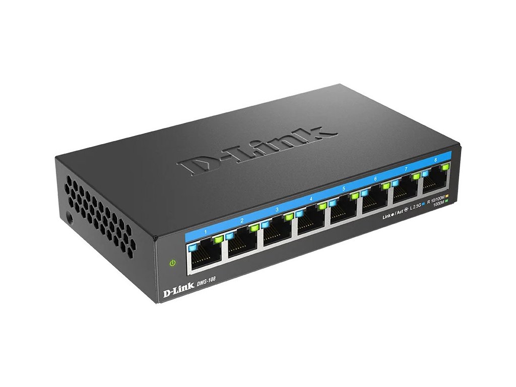 DMS-108 je malý přepínač, který díky 2,5Gb/s Multi-Gigabit Ethernetu na každém portu maximalizuje propustnost vaší sítě. Pomocí tohoto přepínače spolehlivě vyloučíte případné omezení datového toku v síti. Ať už jde o připojení k centru sítě nebo o propojení mezi zařízeními, nyní můžete snadno začít sdílet plynulé připojení k internetu, soubory, hudbu či video, nebo ho využít pro hraní her s dostatečnou kapacitou přenosu.Funkce Quality of Service (QoS) a Flow Control automaticky upřednostňují data důležitá v síťovém provozu. Funkce IGMP Snooping omezuje nežádoucí multicastový provoz, takže si můžete vychutnat bezproblémové streamování videa a sledování IPTV.