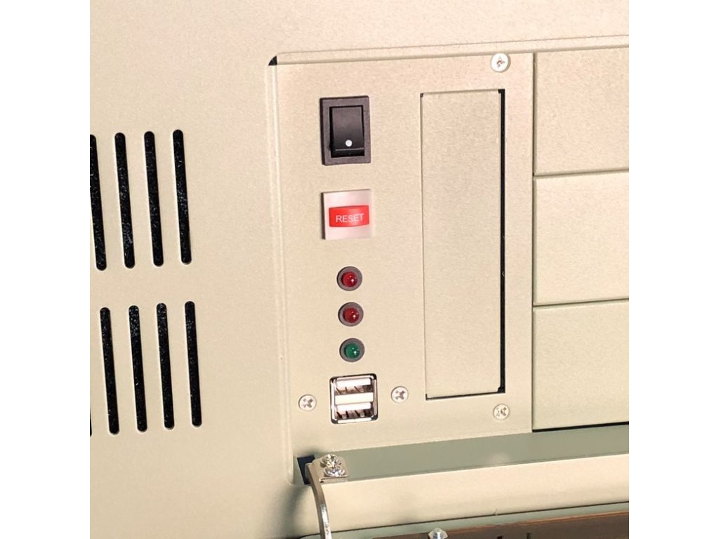 Přední panel /vše umístěné za zamykatelnými dvířky/:
