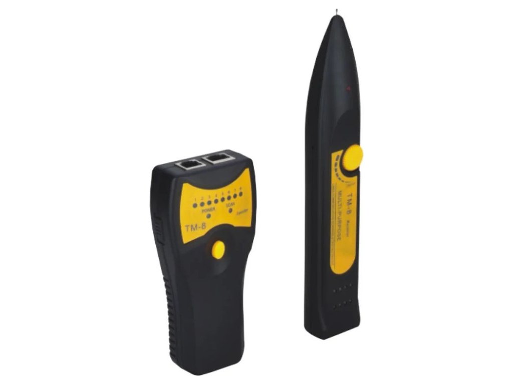 NETWORK CABLE TESTER Multi purpose line of communication scanning & testing device Indukční sonda (přijímač/vysílač) Rozšířený tester o detekční sondu pro vyhledávání kabelového spojení. Bezkontaktní detekce, zvuková a světelná signalizace. Na sondě je integrován filtr proti detekci falešného tónu jiných zařízení. Napájení 2 x 9V. Balení obsahuje: - 1ks přijímač - 1ks vysílač - 2ks baterie 9V - 1ks sluchátka - 1ks RJ11 adaptér - 1ks RJ45 adaptér - 1ks telefonní adaptér s kroko-svorkamiDoplňkové parametry