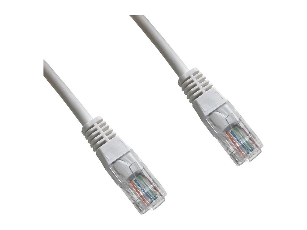 DATACOM Patch kabel UTP lanko cat.5e se dvěma konektory RJ45, pro propojování počítačových sítí (např. pro spojení PC s datovou zásuvkou, patch panelu s aktivními prvky) Parametry a specifikace: Barva: bílá Kategorie: cat.5e Stínění: ne Délka: 7 mDoplňkové parametry