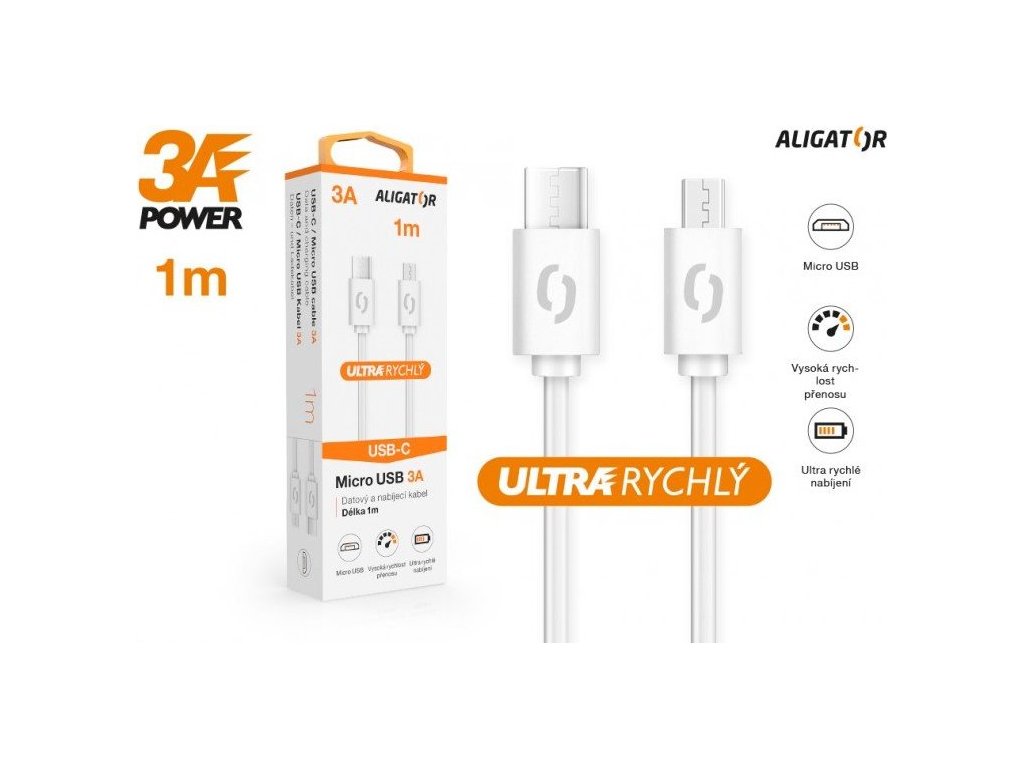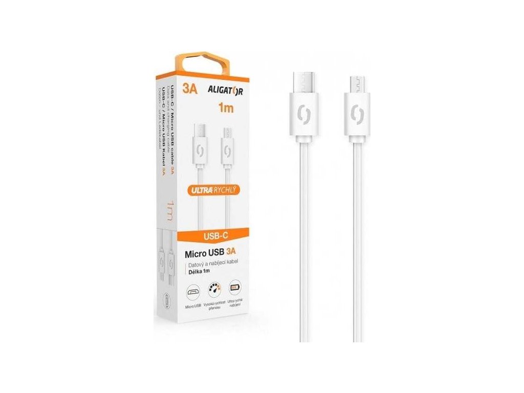 Datový kabel ALIGATOR POWER 3A, USB-C/micro USB 1m bílý