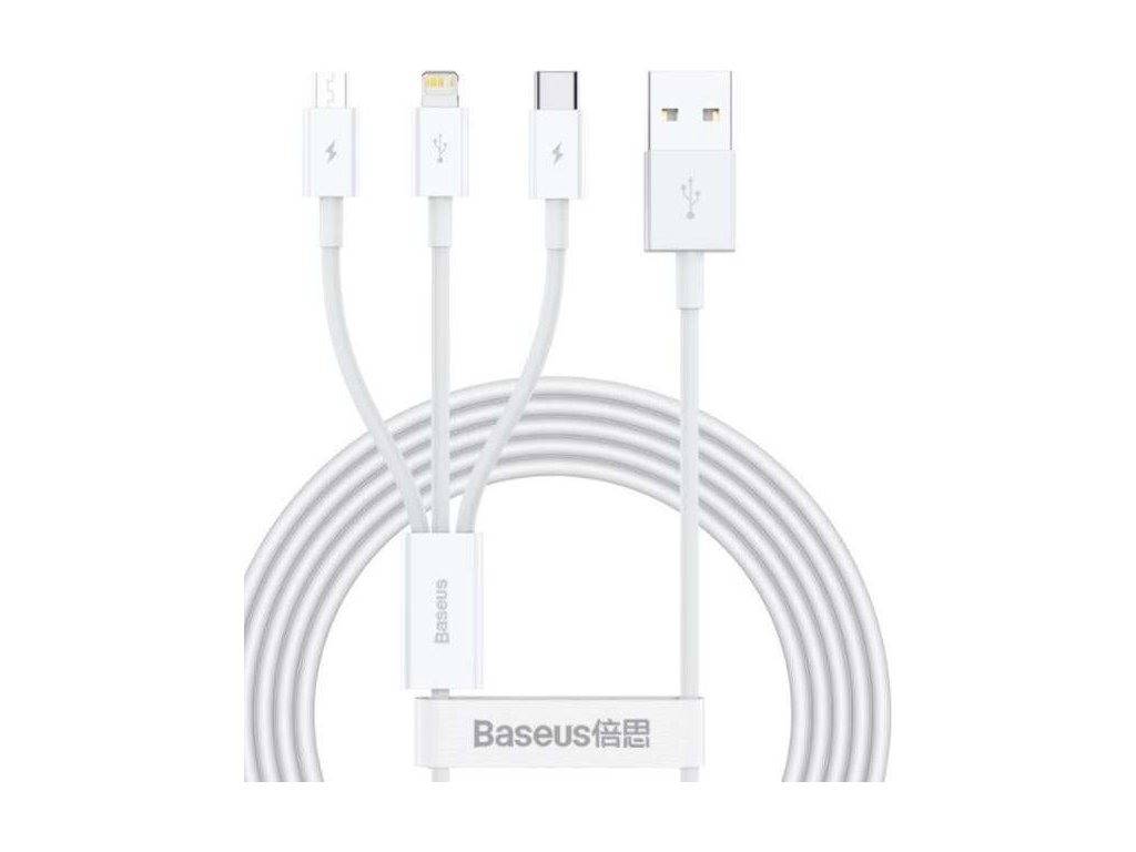 Datový kabel Baseus Superior 3v1 USB/microUSB, Lightning, USB-C 1,5m 3,5A bílý