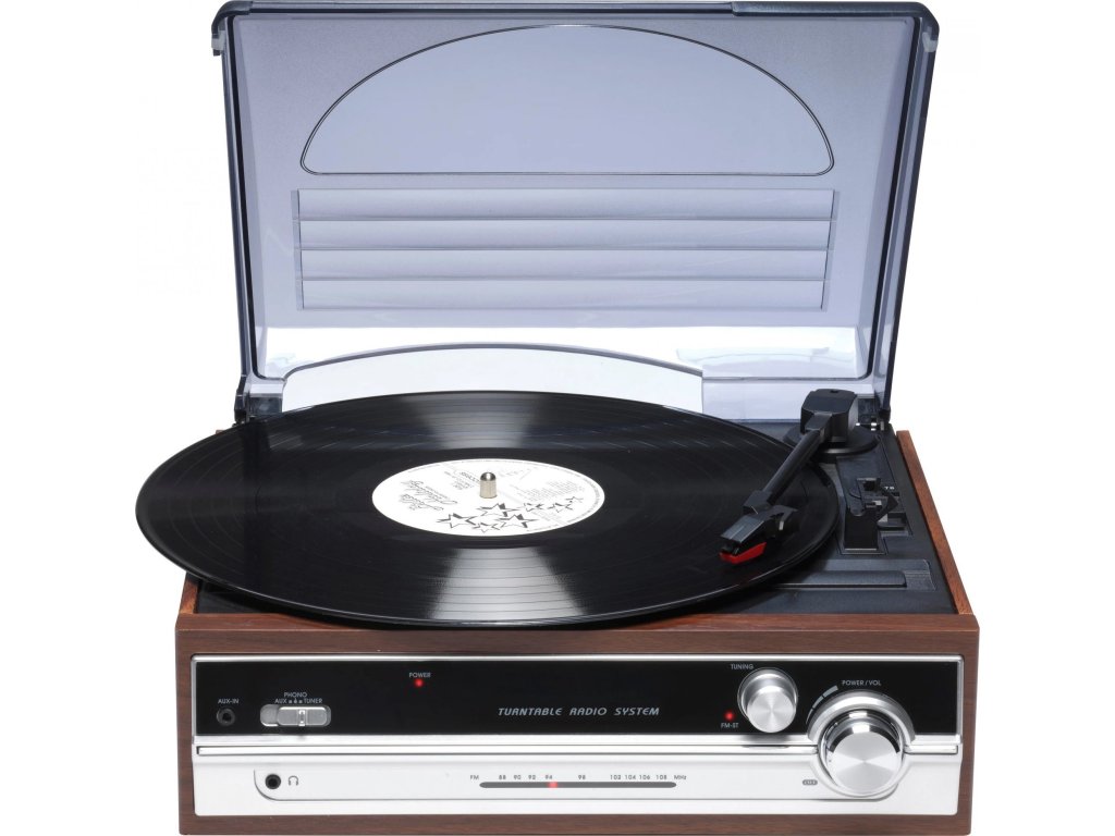 •gramofon s rádiem a vestavěnými reproduktory