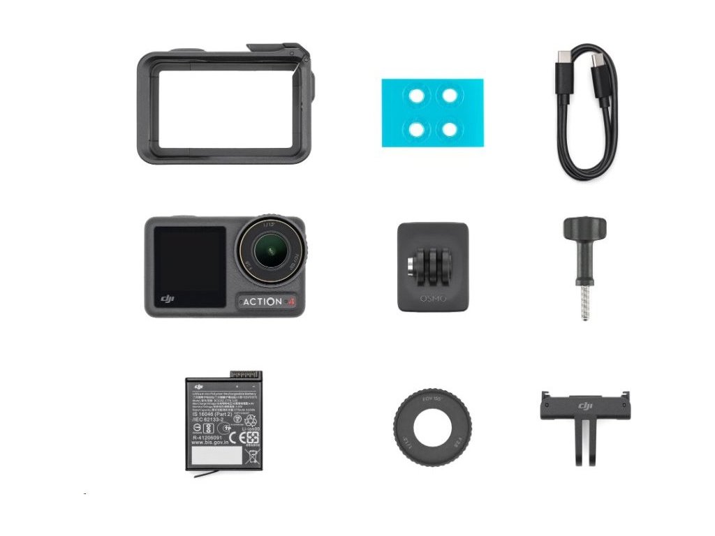 Před použitím zavřete kryt prostoru pro baterii a kryt portu USB-C a utáhněte kryt skleněné čočky. Vodotěsné pouzdro se doporučuje nainstalovat pro dlouhodobé natáčení pod vodou nebo v prostředí s vysokým tlakem vody. Osmo Action 4 a jeho vodotěsné pouzdro mají krytí IP68. Fotoaparát nepoužívejte v horkých pramenech nebo extrémních podmořských prostředích a nedovolte, aby přišel do kontaktu s korozivními nebo neznámými kapalinami.