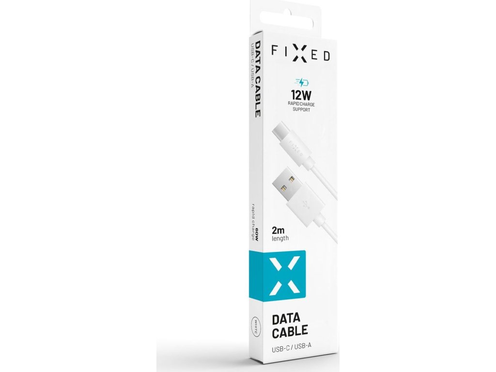 Dlouhý datový a nabíjecí kabel FIXED s konektory USB/USB-C, USB 2.0, 2 metry, bílý