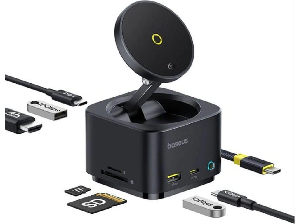 Dokovací stanice 7v1 Baseus MagPro 100W/15W Qi2, 2xUSB-C, 2xUSB, 1xHDMI, SD/microSD slot černá
