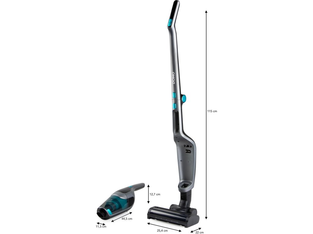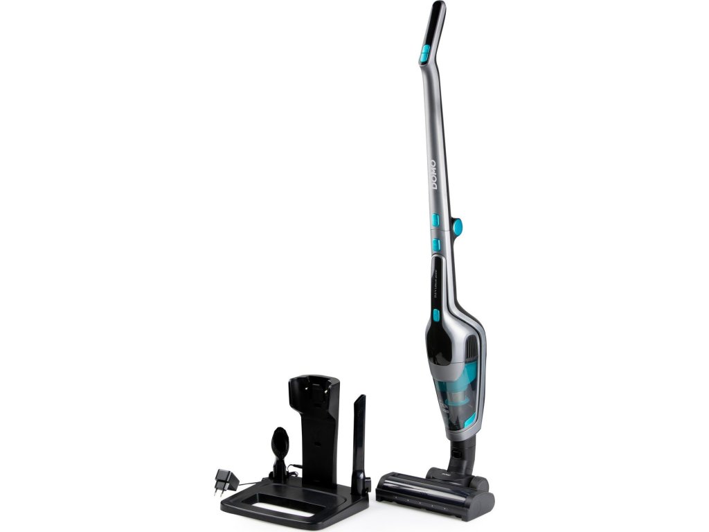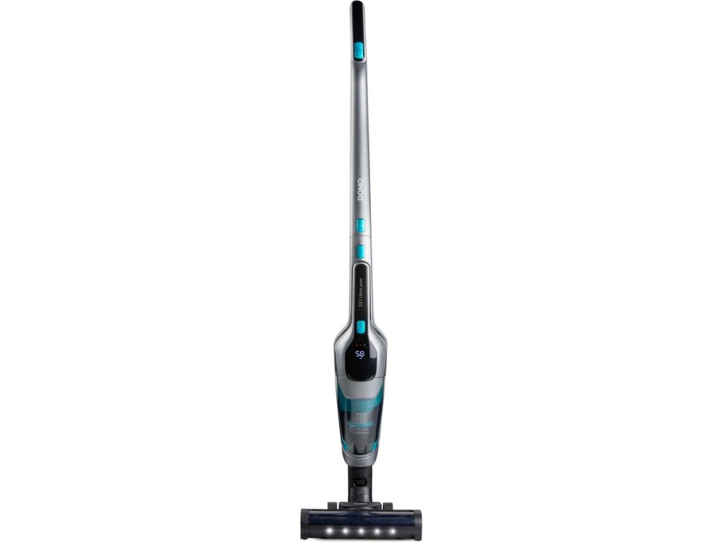 Akumulátorový vysavač DOMO 2v1 DO249SV je výkonný akumulátorový vysavač, který kombinuje tyčový vysavač s odnímatelnou ruční jednotkou. Je vybaven manévrovací podlahovou hubicí s LED osvětlením.Tento bezsáčkový akumulátorový vysavač se třemi nastaveními rychlosti, příkonem 130 W a sáním 9 kPa zajišťuje důkladný úklid.