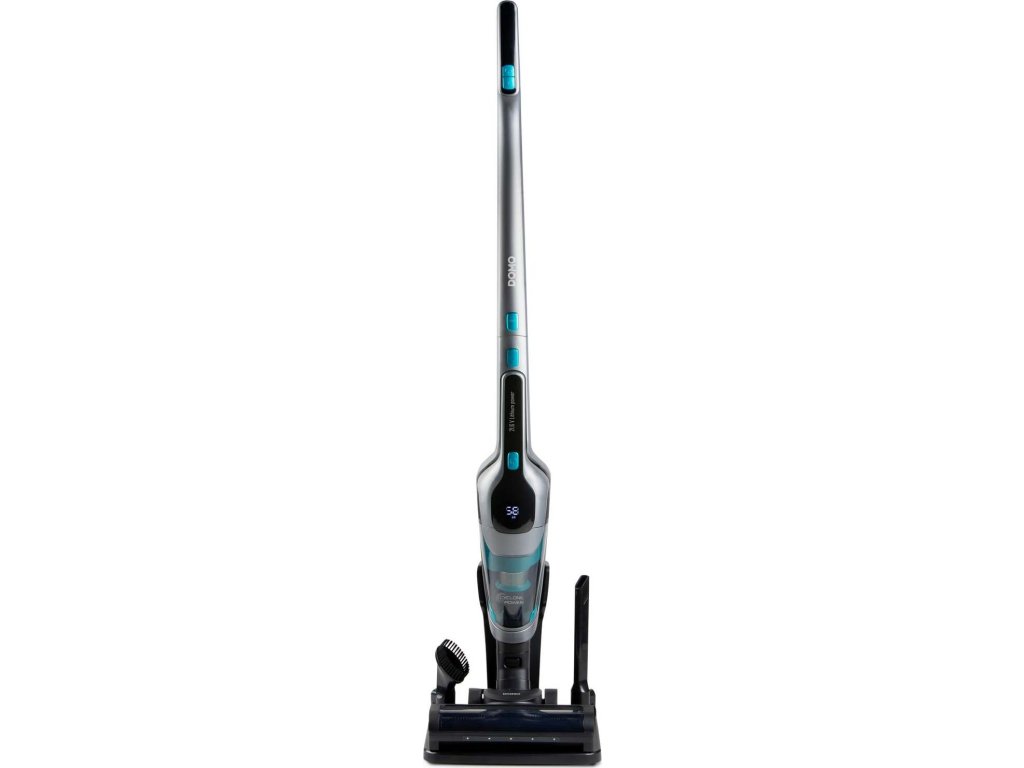 Li-Ion baterie s napětím 21,6 V nabízí až 55 minut provozu a doba nabíjení je 4 až 4,5 hodiny. Praktický LED displej zobrazuje úroveň sání a procenta baterie, takže vždy víte, kolik energie ještě zbývá.