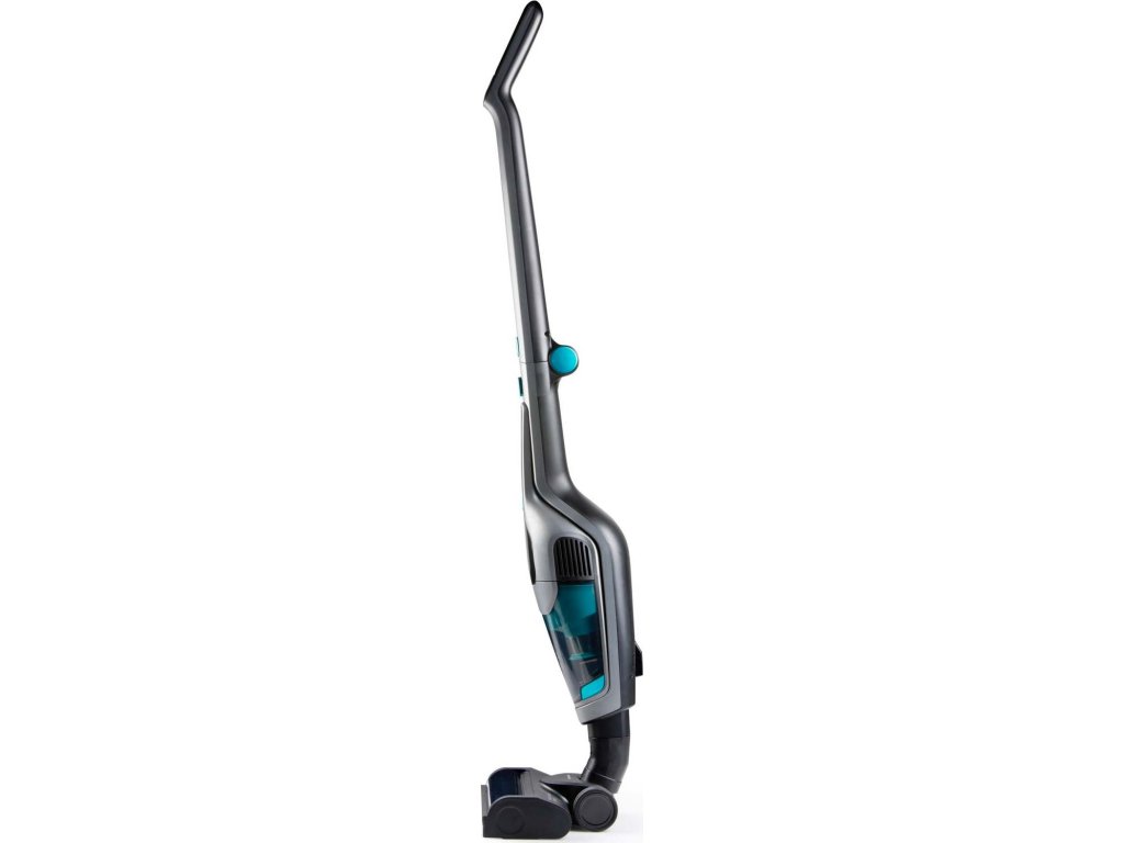 Volně stojící tyčový vysavač: zůstává samostatně ve vzpřímené poloze s parkovacím zámkem, bez nutnosti montáže na zeď
