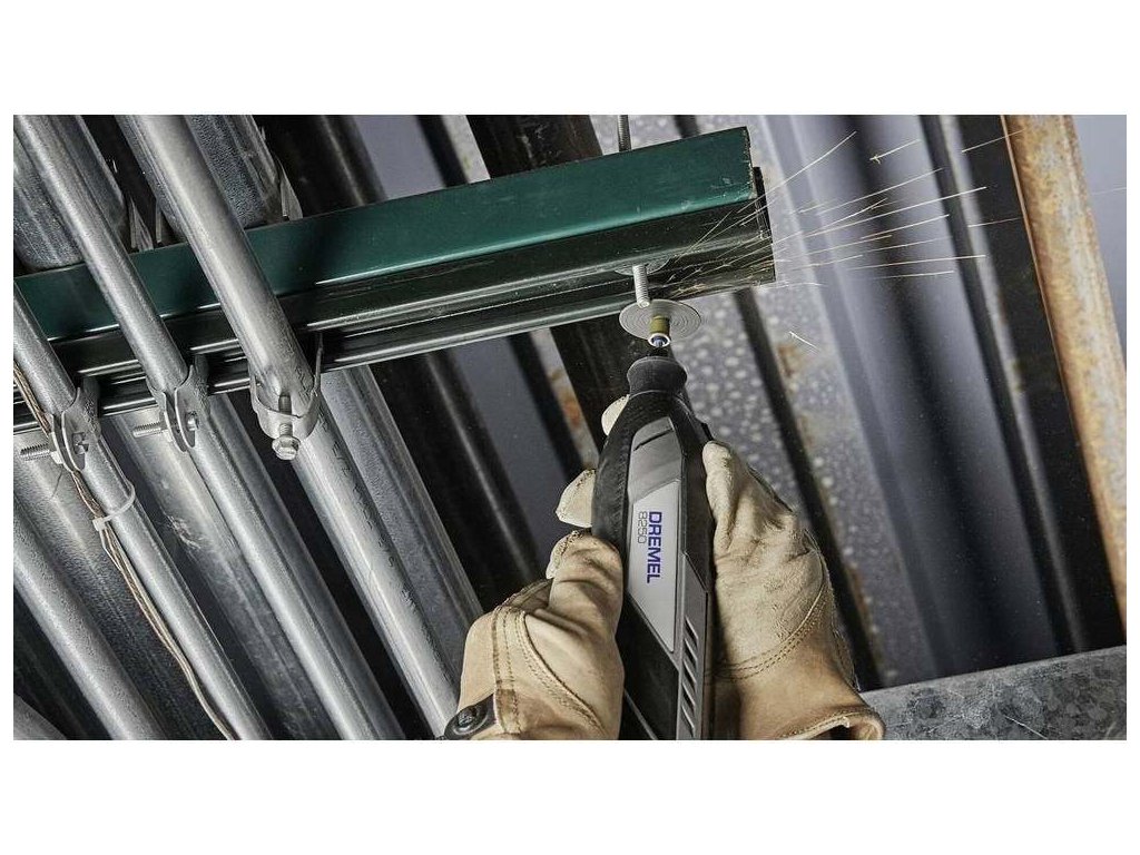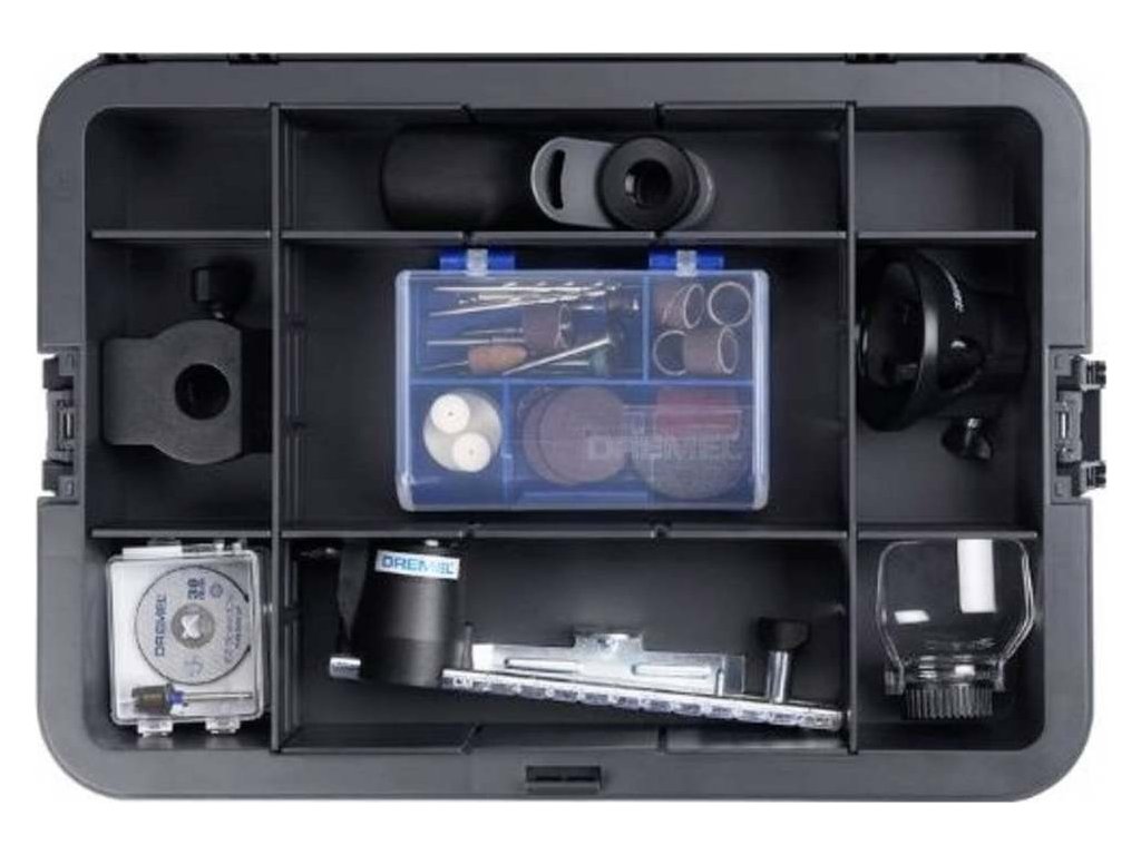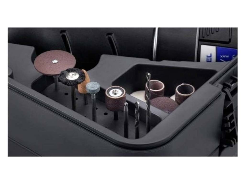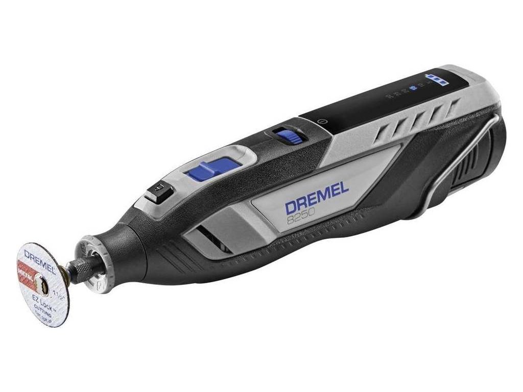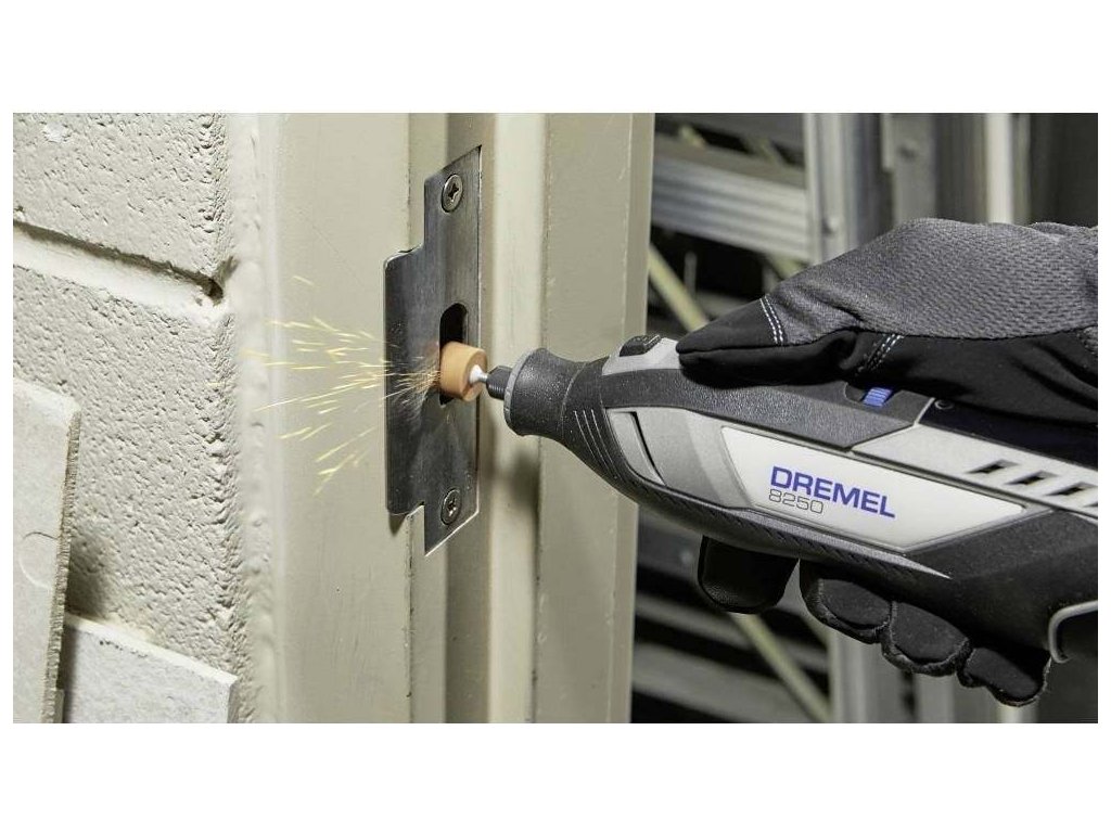 Dremel 8250 je výkonné akumulátorové multifunkční nářadí poháněné 12V 2,0 Ah Li-Ion akumulátorem. Nabízí plně proměnné otáčky 5.000–30.000 ot/min. Je dodáváno jako sada s 5 praktickými nástavci a 65dílnou soupravou příslušenství (vč. EZ Twist) v Dremel Boxu pro organizované a přizpůsobitelné skladování.Technické specifikace: