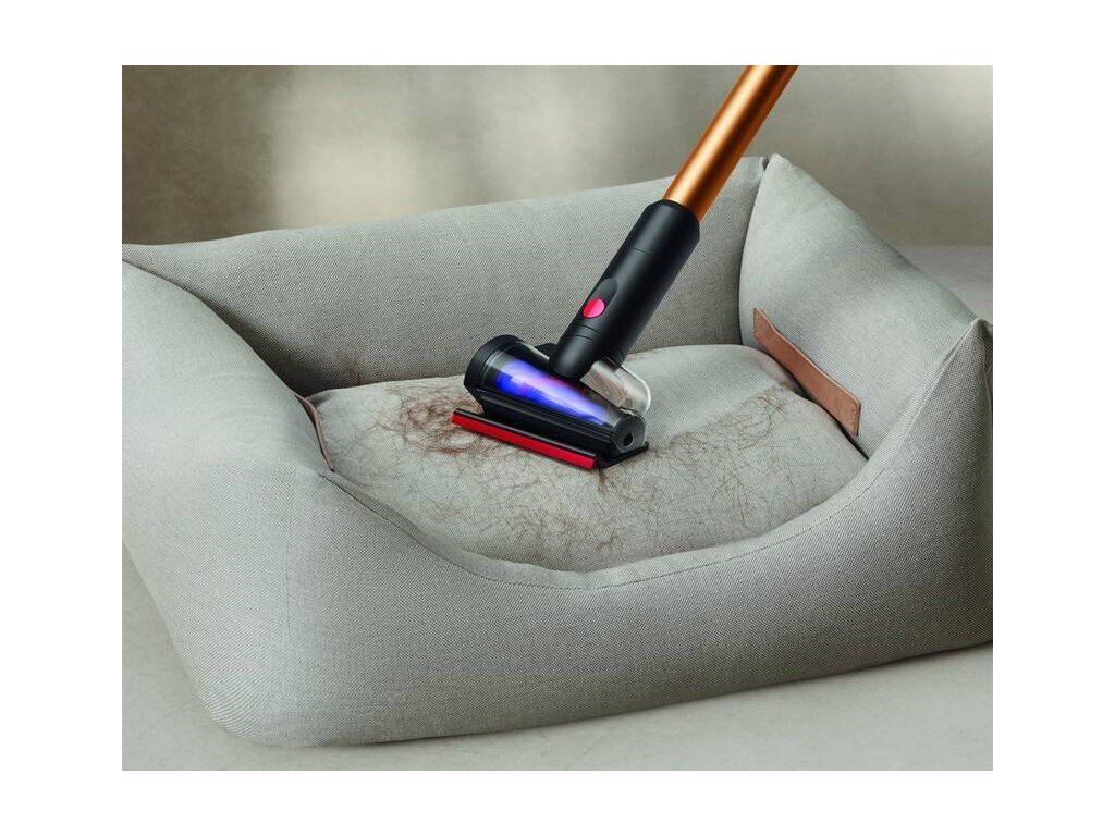 Na kobercích kombinuje výkon osvědčené kartáčové hubice Dyson Motorbar s Dyson Fluffy hubicí na tvrdých podlahách. Vše v jednom bez vyměňování.