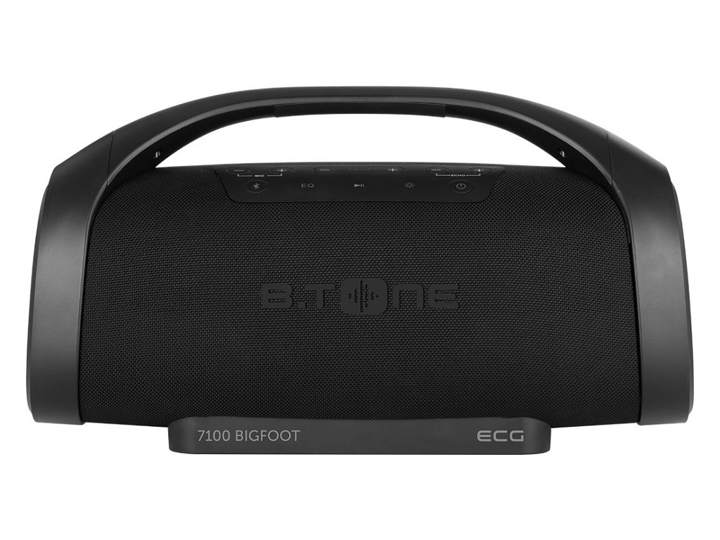 Reproduktor ECG B.TONE 7100 BIGFOOT si zamilujete i pro jeho design. Oceníte na něm elegantní tvary, praktické madlo na přenášení a v neposlední řadě také stylové světelné LED efekty, které jsou umístěny na bocích přístroje. Obsluhu přístroje zvládnete levou zadní díky jednoduchým ovládacím prvkům a hlasovému průvodci, který vás informuje o všem podstatném.