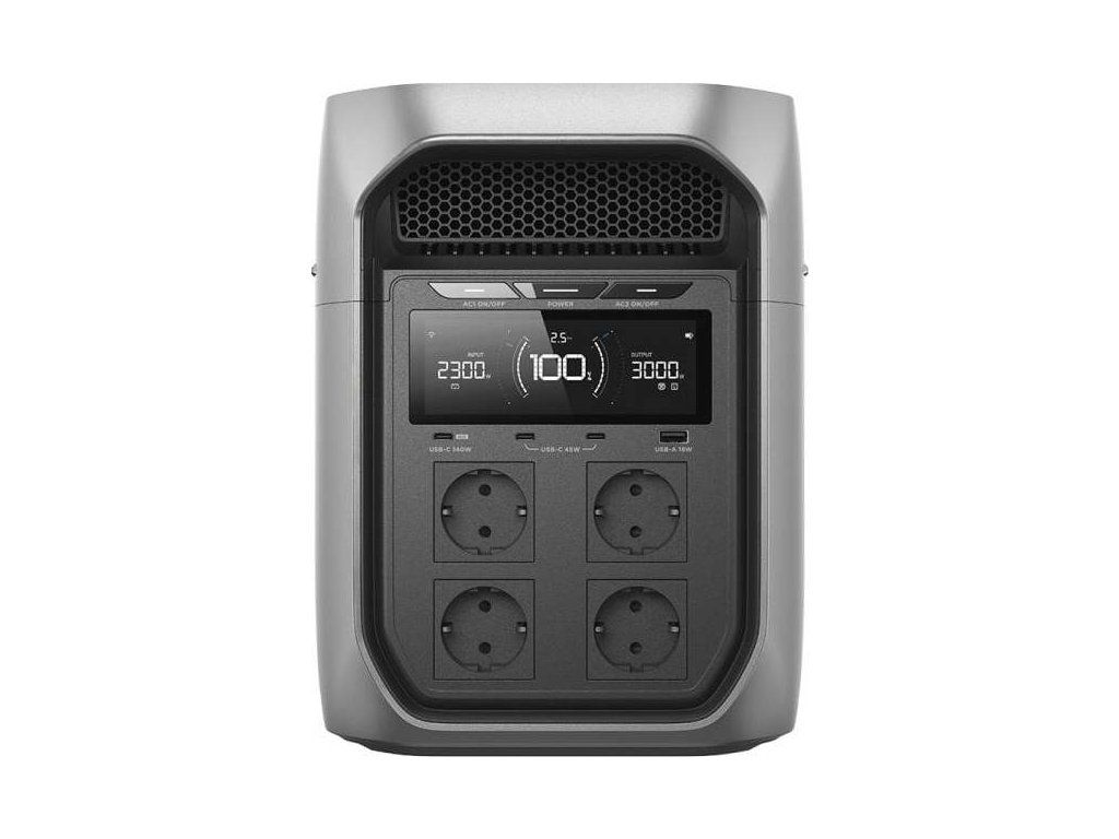 Přenosná bateriová stanice EcoFlow DELTA 3 Max Plus nabízí jmenovitý výkon 3 000 W a špičkový výkon až 6 000 W. S využitím originální funkce X-Boost je navíc připravena napájet některé typy spotřebičů s příkonem až do 3 900 W. Její kapacitu 2 048 Wh, lze rozšířit přídavnými bateriemi až na 12 kWh. Umožňuje tedy dodávat déledobě energii domácím spotřebičům i energeticky náročnějším pracovním nástrojům. Hodí se rovněž jako záložní zdroj (UPS) pro případy výpadků elektrické sítě, a to s rychlostí přepnutí 10 ms.EcoFlow DELTA 3 Max Plus je bateriová stanice s akumulátorem LiFePO4, základní kapacitou 2 048 Wh, která je rozšiřitelná přídavnými bateriemi až na 12 kWh. Má několik výstupů, včetně zásuvek střídavého proudu nebo portů USB-A a USB-C a je tedy připravena napájet domácí spotřebiče i energeticky náročnější pracovní nástroje. Různé možnosti nabíjení umožňují využívat jednotlivé způsoby podle aktuálních potřeb. Stanice tedy představuje nejen velmi spolehlivý, ale zároveň i velmi flexibilní zdroj energie. Disponuje rovněž velmi prostorným displejem, který přehledně zobrazuje informace o aktuálních parametrech jejího provozu.