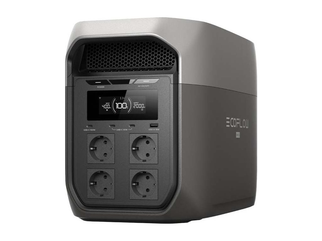 Přenosná bateriová stanice EcoFlow DELTA 3 Max nabízí jmenovitý výkon 2 400 W a s využitím originální funkce X-Boost je navíc připravena napájet některé typy spotřebičů s příkonem až do 3 200 W. Její kapacita baterie 2 048 Wh umožňuje dodávat energii naprosté většině běžných domácích spotřebičů a hodí se i jako záložní zdroj (UPS) pro případy výpadků elektrické sítě, a to s rychlostí přepnutí 10 ms.EcoFlow DELTA 3 Max je bateriová stanice s akumulátorem LiFePO4 a kapacitou 2 048 Wh. Má několik výstupů, včetně zásuvek střídavého proudu nebo portů USB-A a USB-C, kterými lze napájet naprostou většinu běžných spotřebičů a zařízení. Různé možnosti nabíjení umožňují využívat jednotlivé způsoby podle aktuálních potřeb. Stanice tedy představuje nejen velmi spolehlivý, ale zároveň i velmi flexibilní zdroj energie. Disponuje i velmi prostorným displejem, který přehledně zobrazuje informace o aktuálních parametrech jejího provozu.