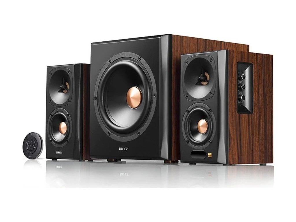 EDIFIER S360DB je regálový 2.1 Bluetooth reproduktorový set pro počítačové místnosti a obývací pokoje. Uvnitř setu diktuje zesílení pravý CLASS-D zesilovač s technologií DSP, potěší i dekodér Qualcomm aptX.Kvalitní dřevěný vinyl vytváří skvělý zvukový projev a vzhled. Překližka MDF minimalizuje rezonanci boxu a poskytuje křišťálově čistý zvuk. Osazený 4" středovými reproduktory, rovinnými membránovými výškovými reproduktory třídy Hi-Fi a 8" subwooferovým reproduktorem pro dosažení mohutného dunivého zvuku.