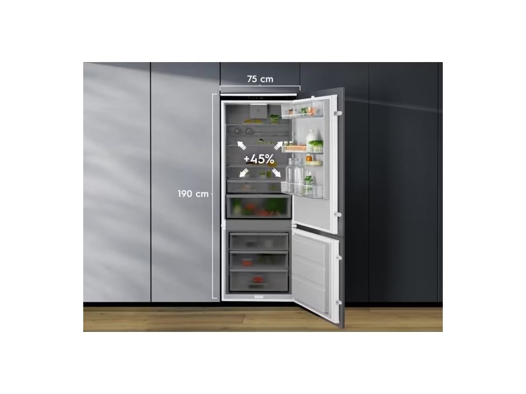 Díky MaxiSpace získáte o 45 % větší kapacitu, než nabízí standardní chladnička s mrazničkou.* Je vyšší a širší než běžné chladničky a poskytuje dostatek prostoru pro spoustu potravin.