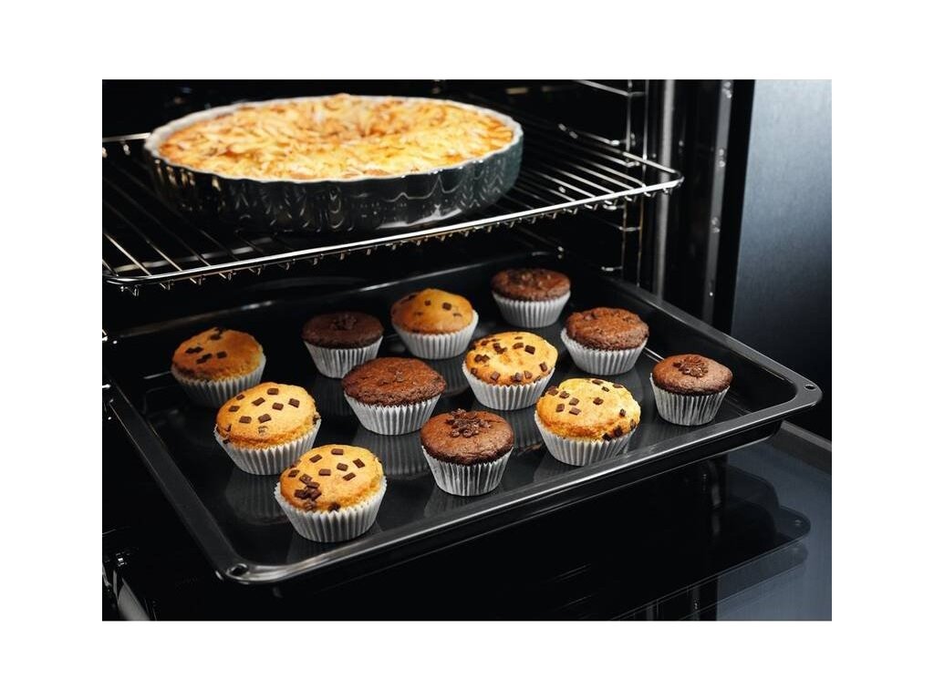 S horkovzdučnou troubou 600 SurroundCook® bude vše rovnoměrně propečeno, od kuřecí pečínky s křupavou kůrkou po nadýchané pusinky. Konstantní teplotu uvnitř celé trouby zajišťuje ventilátor, který rozhání teplý vzduch do všech koutů. Proto už nemusíte otáčet plechy během pečení.