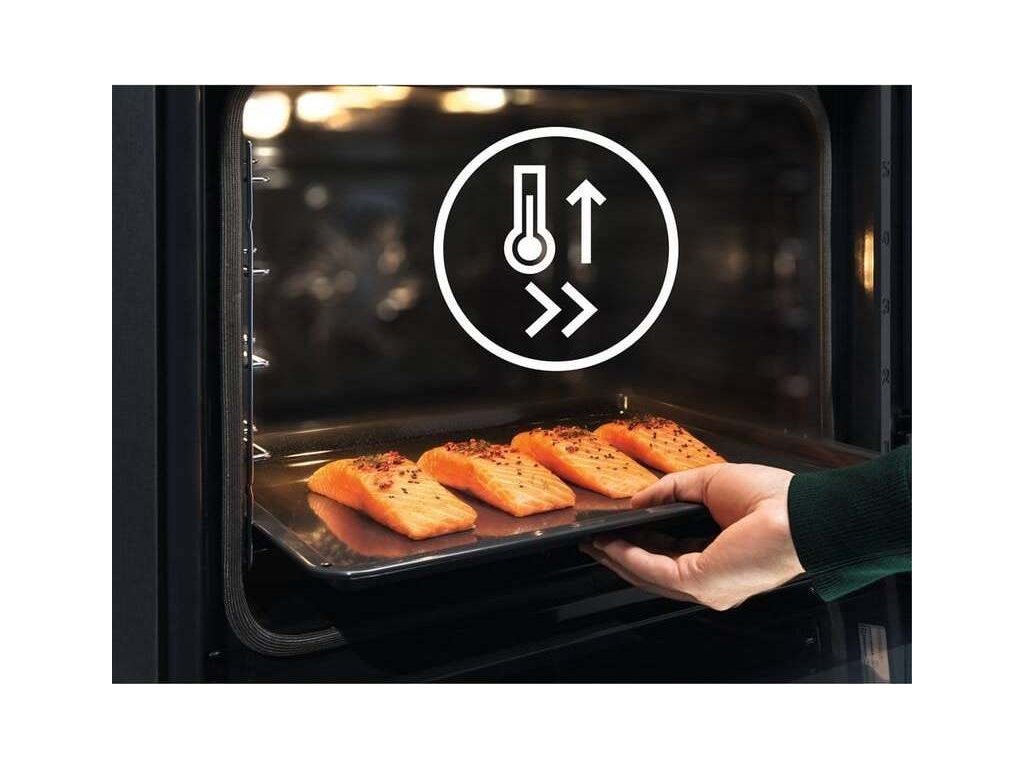Naše funkce rychlého zahřátí zajišťuje, že je trouba rozpálená přesně ve chvíli, kdy potřebujete. Ve srovnání s jinými troubami se totiž zahřeje na požadovaný stupeň v kratším čase. Vy tak máte dříve hotovo a můžete odpočívat.