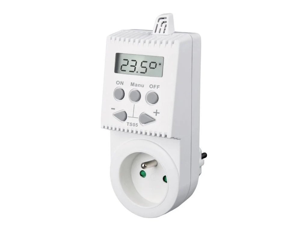 Vlastnosti tepelně spínané zásuvky TS05:Rychlé nastavení požadované teploty tlačítky + a - .