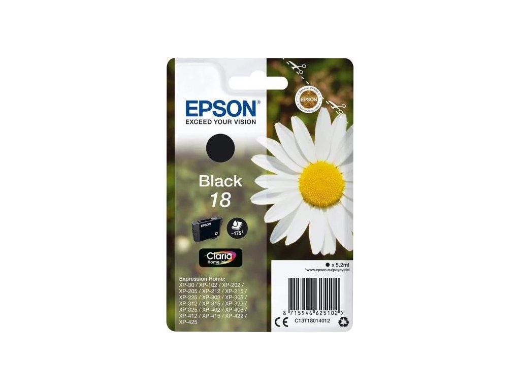 Popis výrobku Epson 18 - černá - originál - inkoustová cartridgeTyp výrobku Inkoustová cartridge