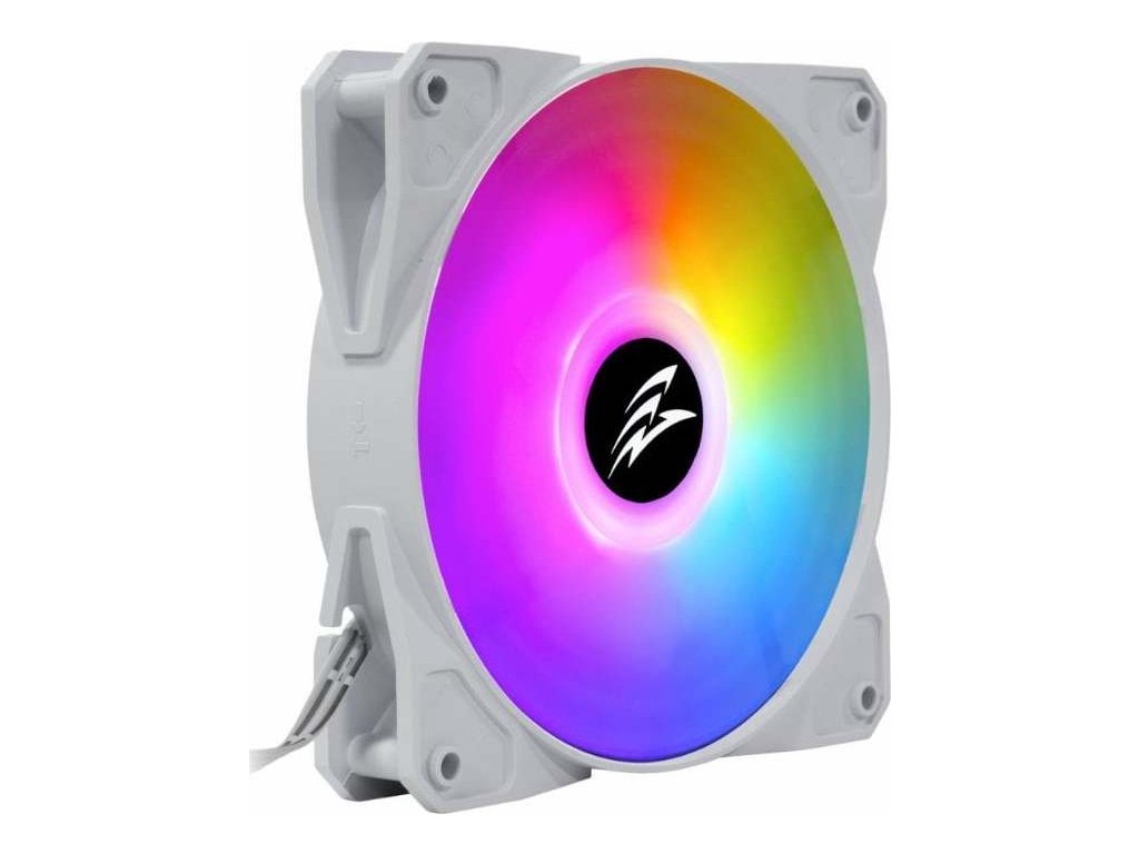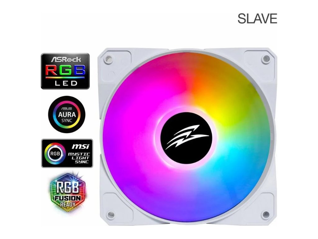 EVOLVEO 12FSW ventilátor 120mm, ARGB, bílý rám, slaveARGB LED ventilátor typu rainbow s LED diodami. Ventilátor umožňuje najednou zobrazit všech sedm barev duhového spektra. Jedná se o kontrolní ventilátor, který je určen pro použití s ventilátorem EVOLVEO 12FMW. LED osvětlení je ovládáno pomocí tlačítka reset nebo LED tlačítka na ovládacím panelu skříně nebo připojením přiloženého ARGB kabelu k základní desce.