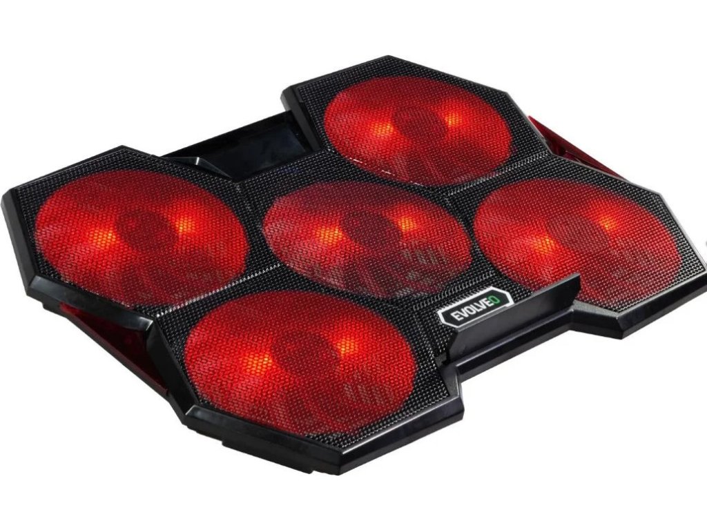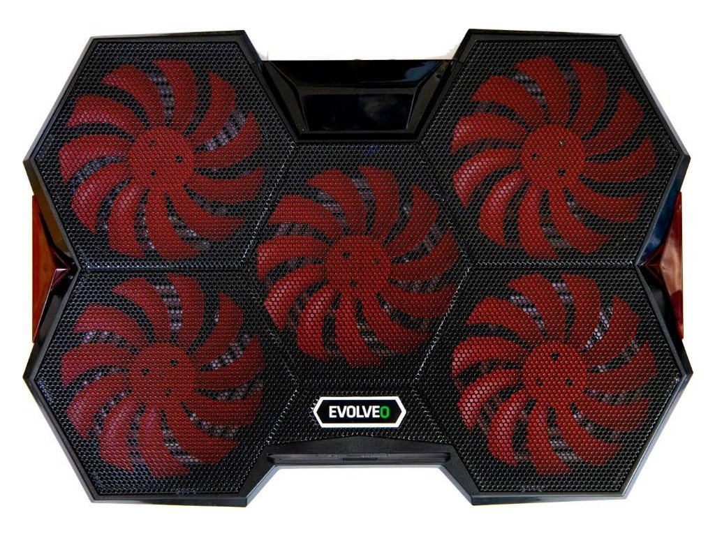 Popis produktuHerní polohovatelný chladící podstavec pro notebooky velikosti 11- 17.3" s červeným podsvícením. Regulace rychlosti otáček ventilátorů