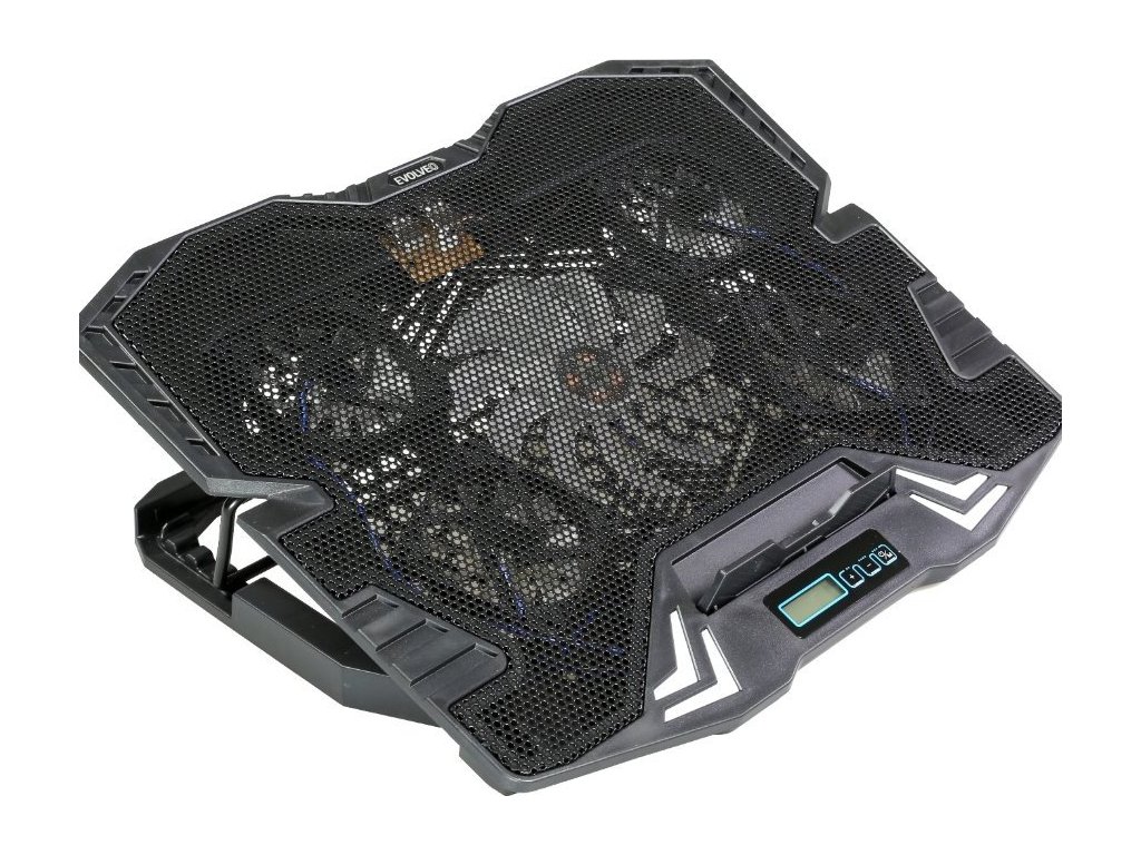 Popis produktuHerní polohovatelný chladící podstavec pro notebooky velikosti 11- 15.6". Regulace rychlosti otáček ventilátoru, displej s ukazatelem rychlosti ventilátorů.