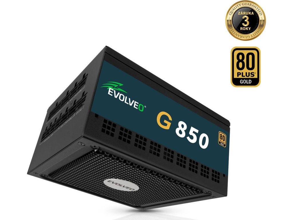PC zdroj EVOLVEO G850-BK je hrdým držitelem certifikace 80 PLUS Gold, která slibuje až 92% účinnost (při běžném 50% zatížení). Minimální ztráty energie a nízké zahřívání jdou přitom ruku v ruce s tichým chodem 140mm HDB ventilátoru – ten má mezi hřídelí a ložisky speciální olejovou vrstvu a jeho tření je nepatrné, takže hlučnost zůstává na minimu. S tímto zdrojem vás zkrátka hučení ventilátoru neruší – slyšet je jen svištění kol vaší formule nebo řinčení zbraní vaší armády.Prémiové japonské kondenzátory, jimiž je tento zdroj vybaven, jsou spolehlivé a extra výkonné. Navíc odolávají teplotám až 105 °C. A jejich životnost? Až 20 let! I díky nim se můžete bezhlavě (ale taky bez obav) pustit do jakékoliv herní výzvy.