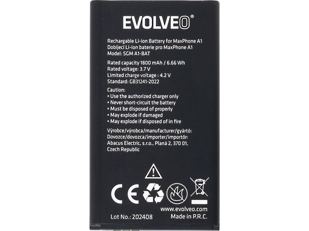 EVOLVEO orig. baterie 1800 mAh pro MaxPhone A1, StrongPhone Q1/Z4/W4