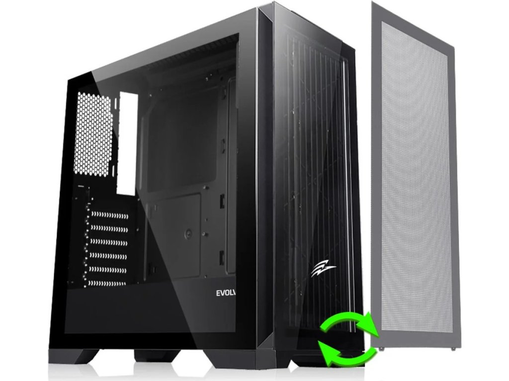 EVOLVEO Ptero Q2, 2x čelní panel: sklo/mřížka, case ATX, černá• Počítačová skříň - ATX, mATX (Micro ATX) a mITX (mini ITX)
